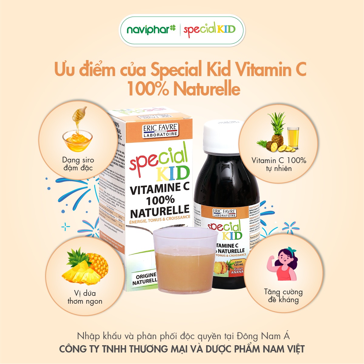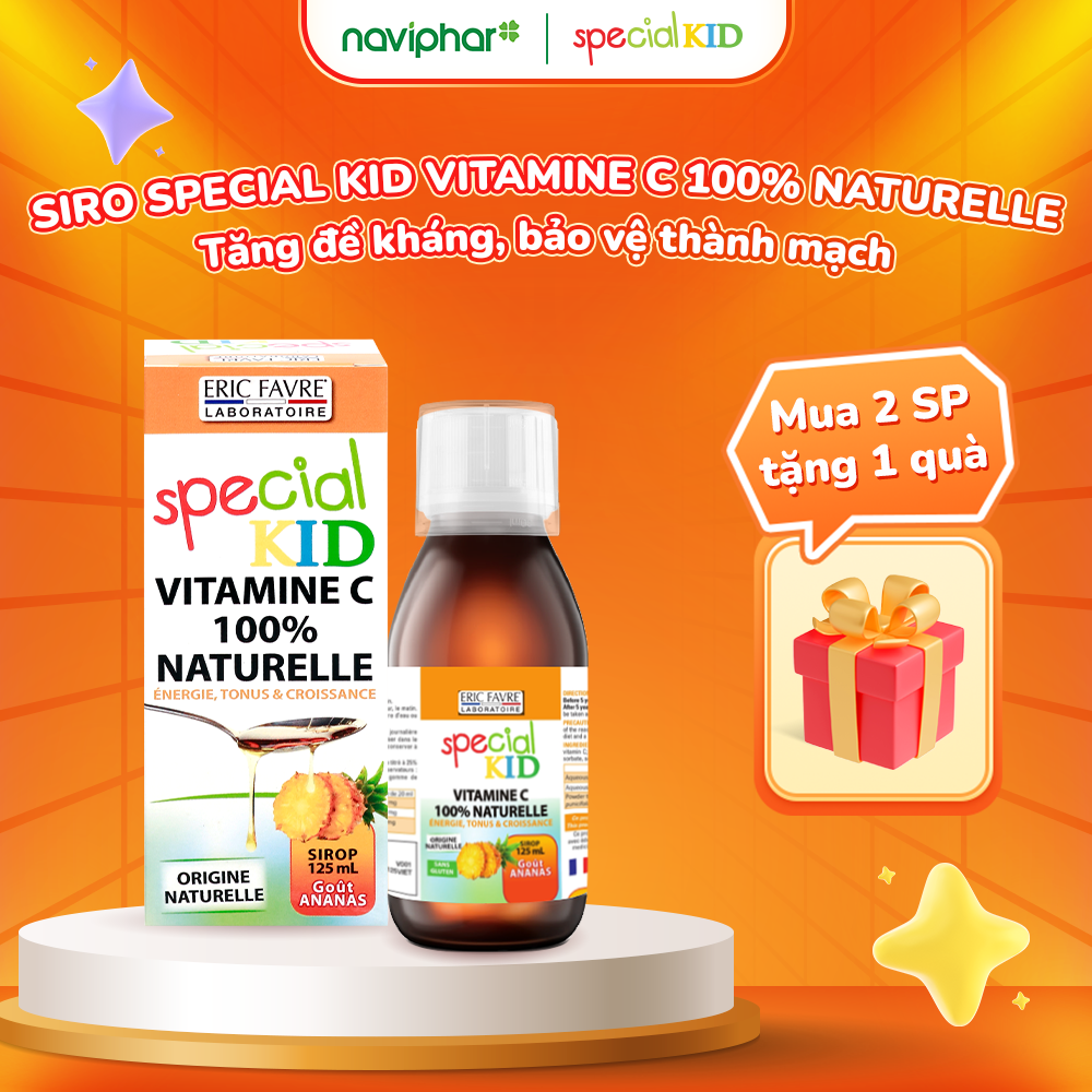 Siro bổ sung Vitamin C tự nhiên TPBVSK Special Kid Vitamine C 100% Naturelle / Special Kid 100% Natural Vitamin C 125ml Tăng cường hấp thụ sắt, tăng sức đề kháng, chống nhiễm trùng, bảo vệ thành mạch máu [Nhập khẩu - Pháp]