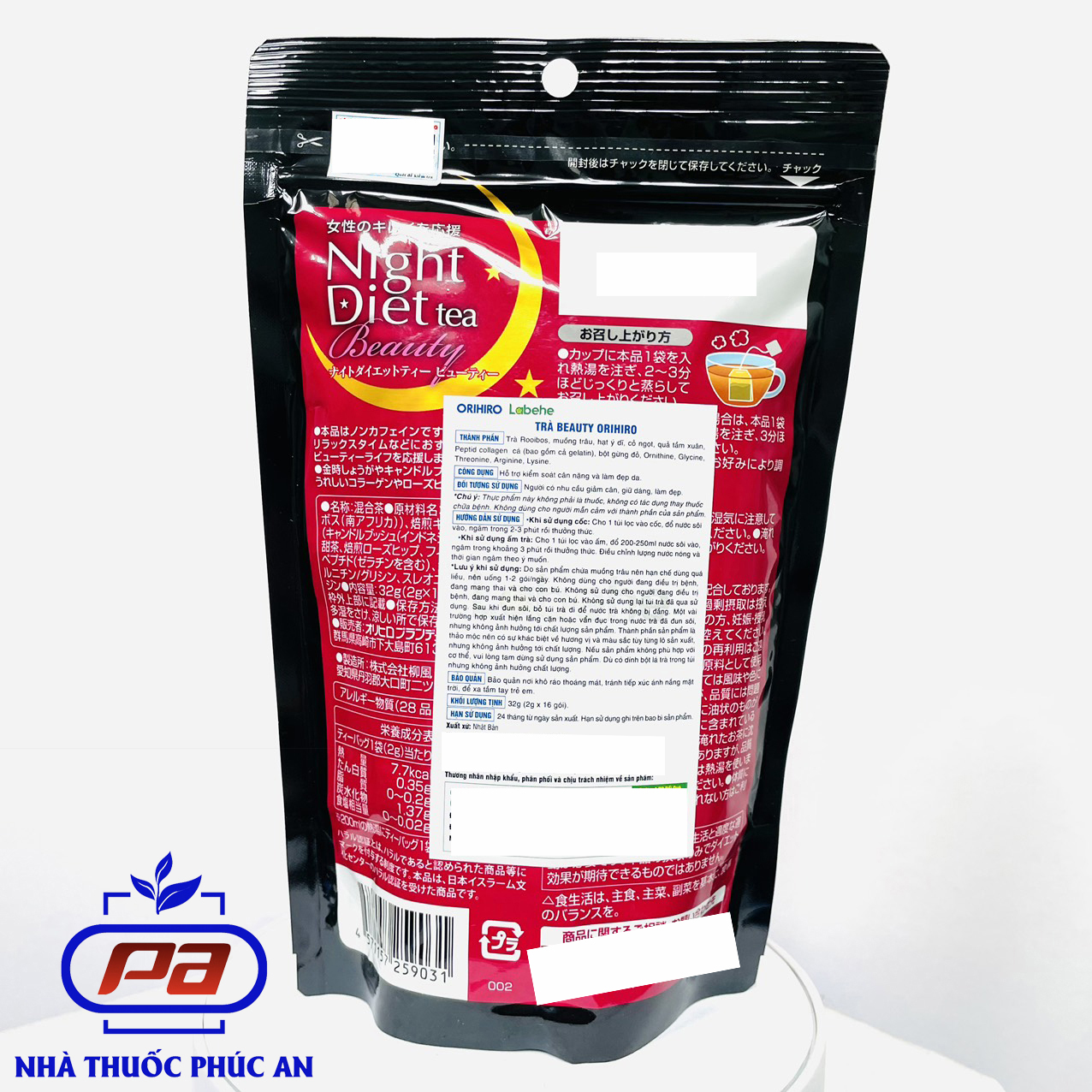 Thông số kỹ thuật Trà Beauty Collagen Orihiro 16 gói giúp giảm cân, phân giải mỡ thừa, chống lão hóa và đẹp da