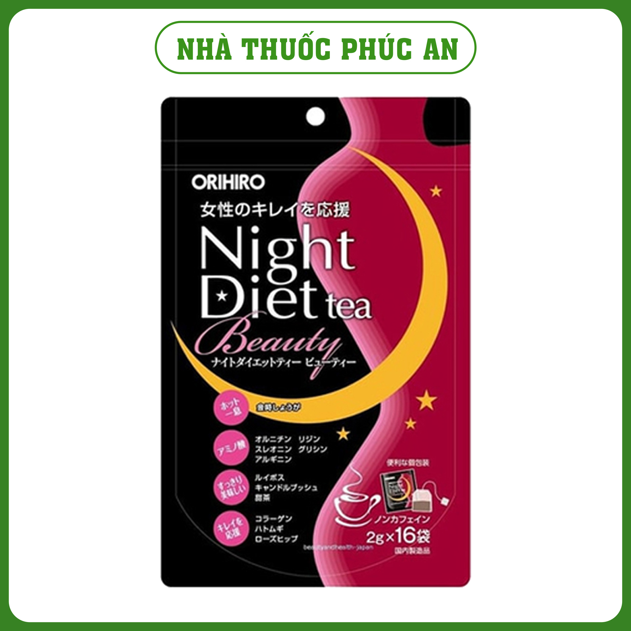 Trà phân giải mỡ làm đẹp da ban đêm Orihiro Night Diet Tea Beauty giúp tan mỡ bụng, hạn chế tích tụ chất béo, ngoài ra còn bổ sung collagen tăng độ đàn hồi cho da, giảm nếp nhăn, Trà chiết xuất từ thành phần tự nhiên, an toàn với sức khỏe, vừa giúp hỗ trợ tan mỡ, vừa bổ sung chất làm đẹp da, duy trì vóc dáng.