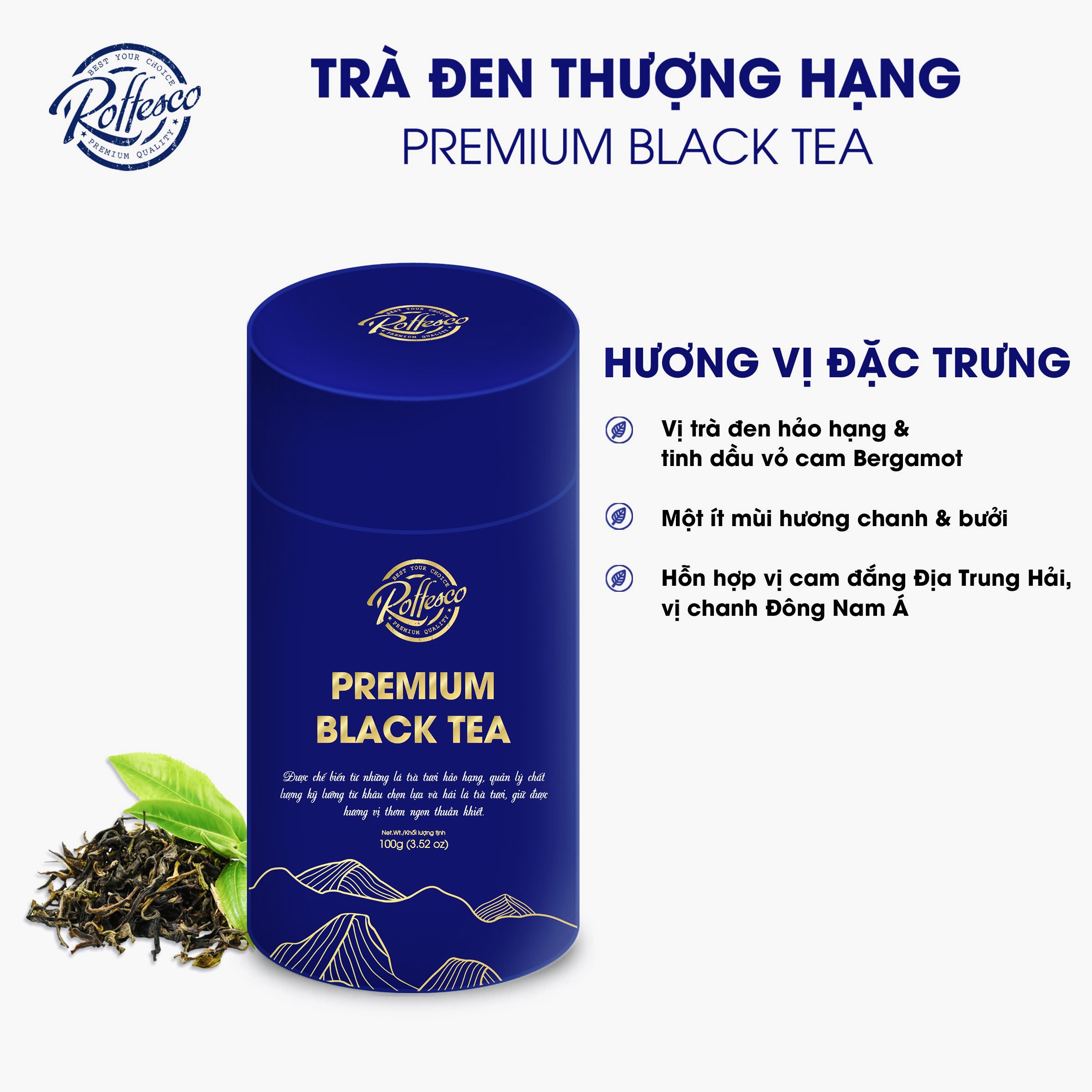 Thông số kỹ thuật Trà Đen ROFFESCO PREMIUM BLACK TEA Sạch Nguyên Chất Lon 100G
