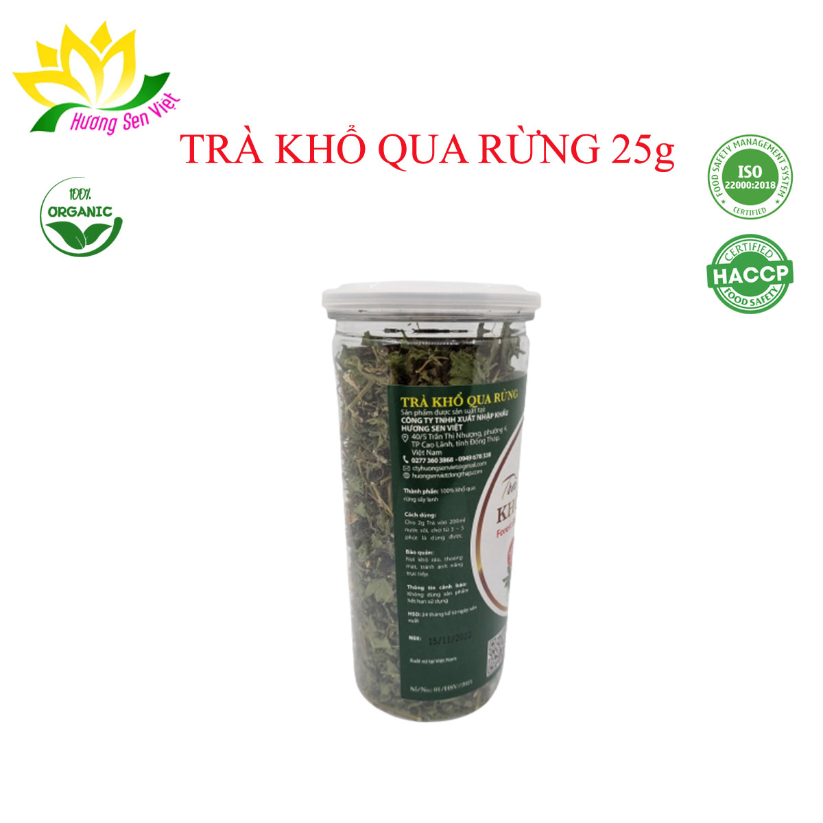 Thông số kỹ thuật (COMBO 2 HŨ) TRÀ KHỔ QUA RỪNG HŨ 25G - HƯƠNG SEN VIỆT