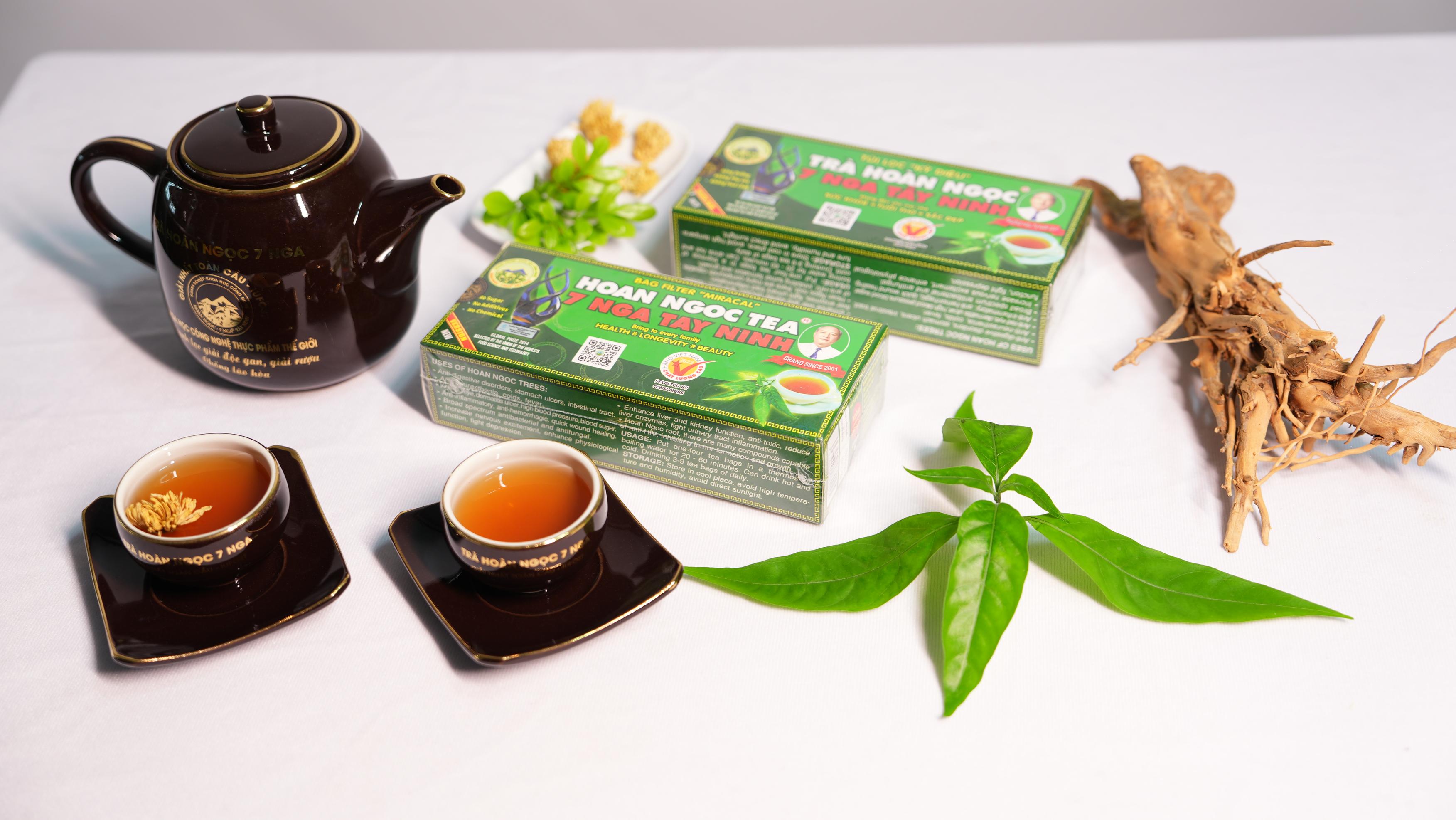 Chiết suất từ lá và rễ cây Hoàn Ngọc 7 năm tuổi cùng các dược liệu tự nhiên hòa quyện trong túi trà truyền thống