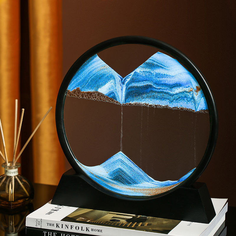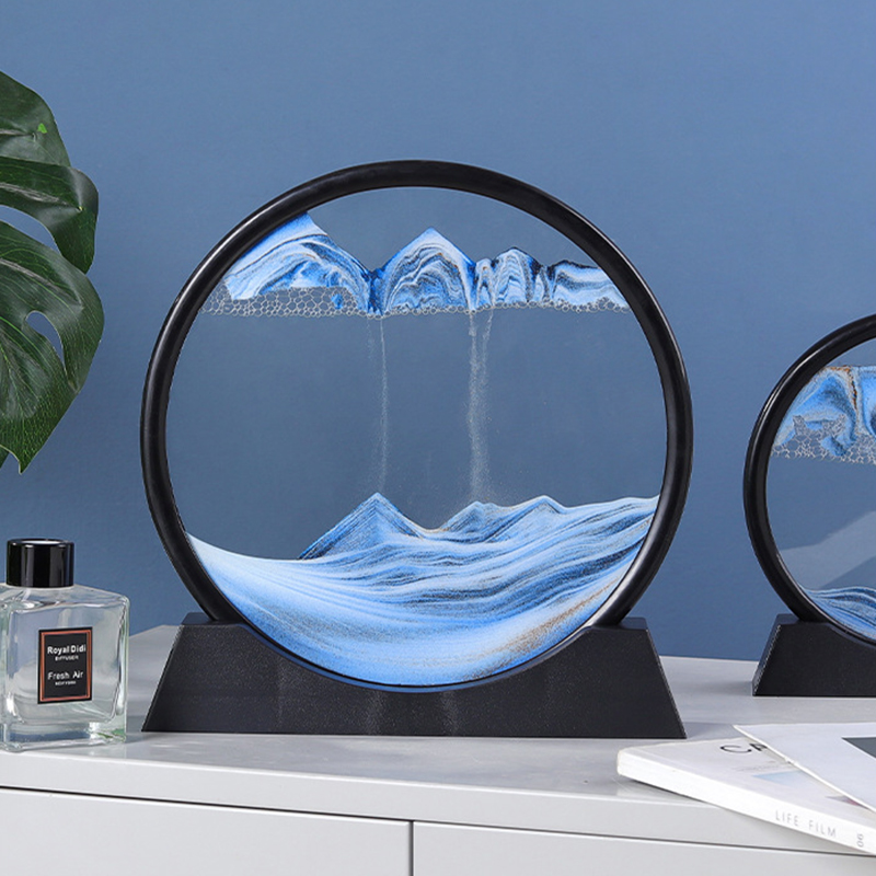 Tranh Cát 3D Chuyển Động Tranh Cát Chảy Hình Tròn Làm Quà Tặng Trang Trí Bàn Làm Việc Tinh Tế, Sang Trọng (đế & viền màu trắng hoặc đen ngẫu nhiên)