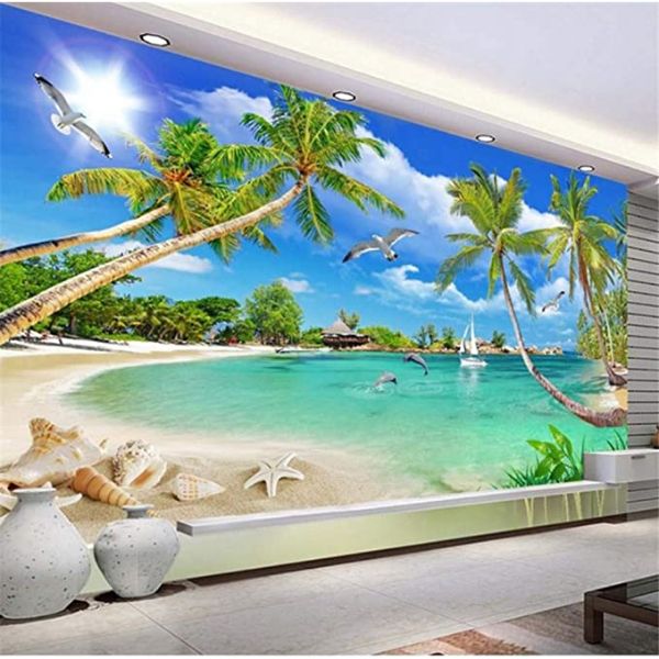 Với hình ảnh thiên nhiên ,tranh dán tường 3d cảnh bờ biển giúp gian phòng bạn trở nên rộng rãi,thêm phần thoải mái