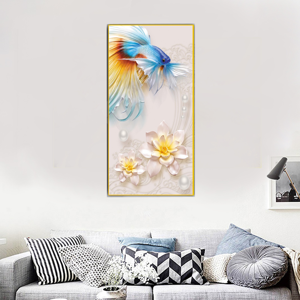 Tranh Treo Tường Tráng Gương PVC-CA Họa Tiết Cá Koi Trang Trí Phòng Khách, Không Gian Bếp Hiện Đại Lịch Sự Sang Trọng.