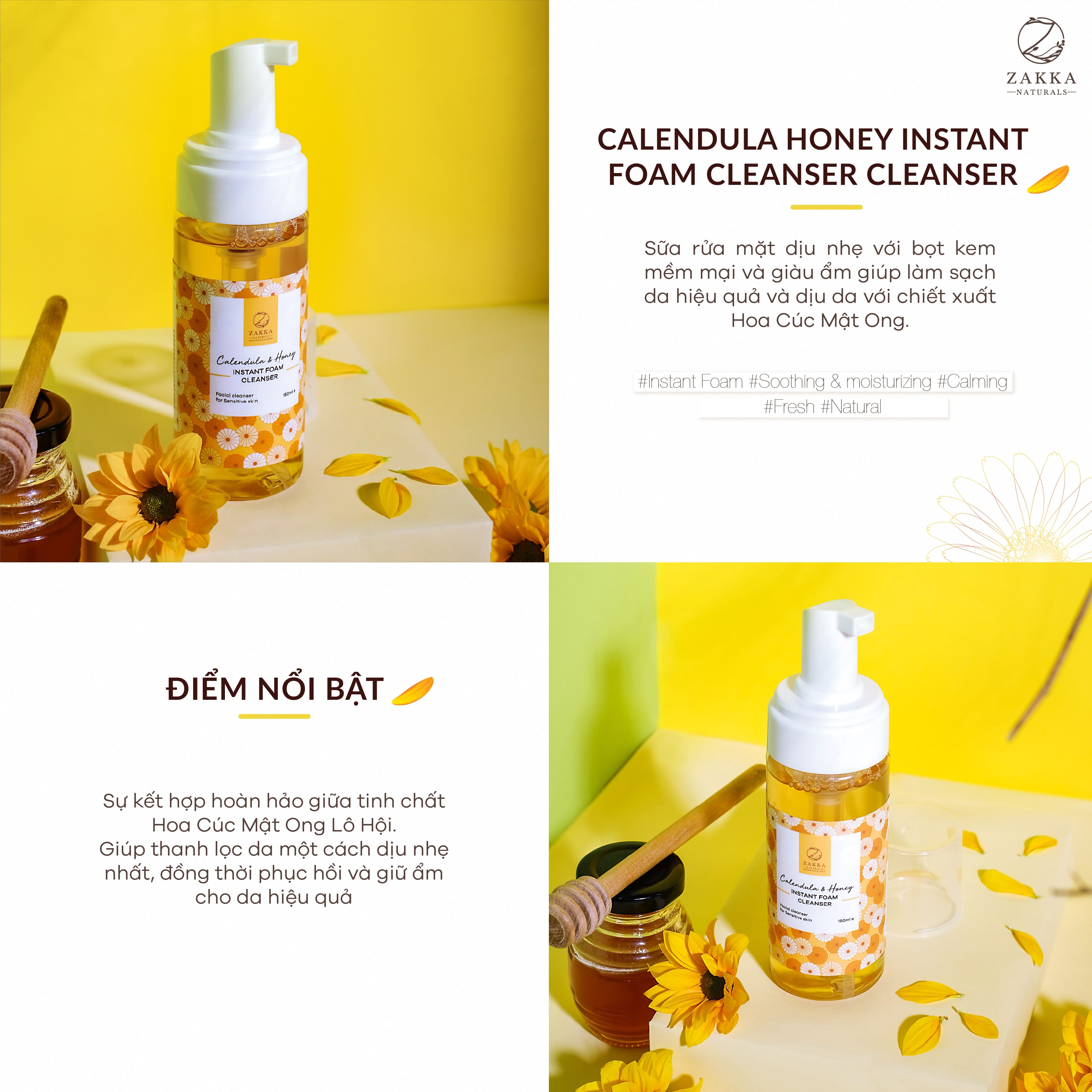 1 Sữa Rửa Mặt Hoa Cúc Zakka Naturals Calendula & Honey Instant Foam Cleanser Làm Sạch Dịu Nhẹ Giữ Ẩm Cho Da 150ml