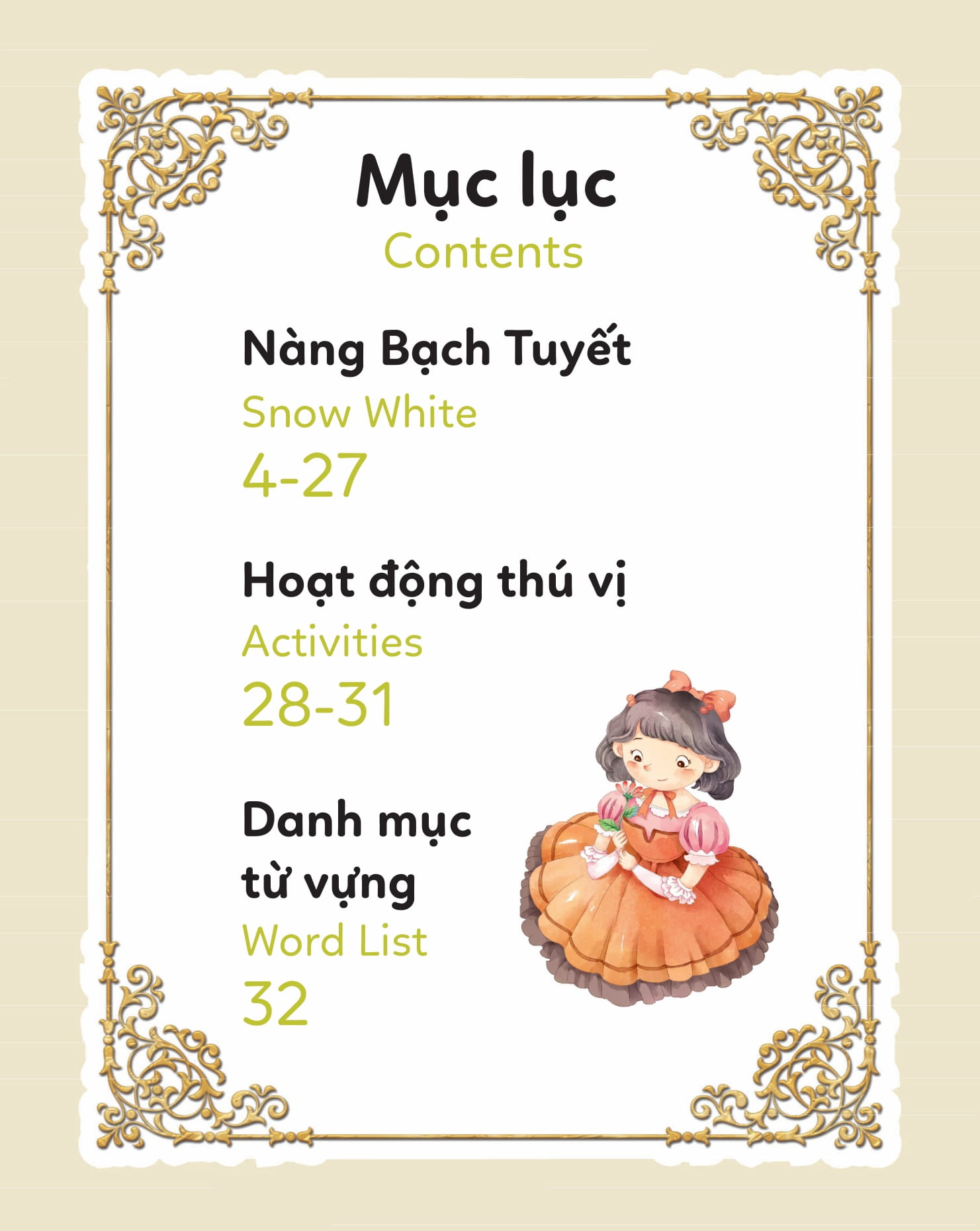 Truyện Cổ Tích Nổi Tiếng Song Ngữ Việt - Anh: Nàng Bạch Tuyết - Snow White - Dành cho bé dưới 11 tuổi