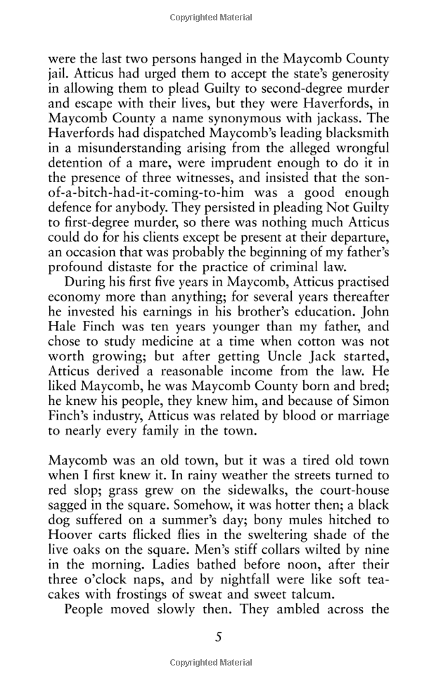 "Shoot all the bluejays you want, if you can hit 'em, but remember it's a sin to kill a mockingbird." A lawyer's advice to his children as he defends the real mockingbird of Harper Lee's classic novel - a black man charged with the rape of a white girl. Through the young eyes of Scout and Jem Finch, Harper Lee explores with exuberant humour the irrationality of adult attitudes to race and class in the Deep South of the 1930s. The conscience of a town steeped in prejudice, violence and hypocrisy is pricked by the stamina of one man's struggle for justice. But the weight of history will only tolerate so much. To Kill a Mockingbird is a coming-of-age story, an anti-racist novel, a historical drama of the Great Depression and a sublime example of the Southern writing tradition.