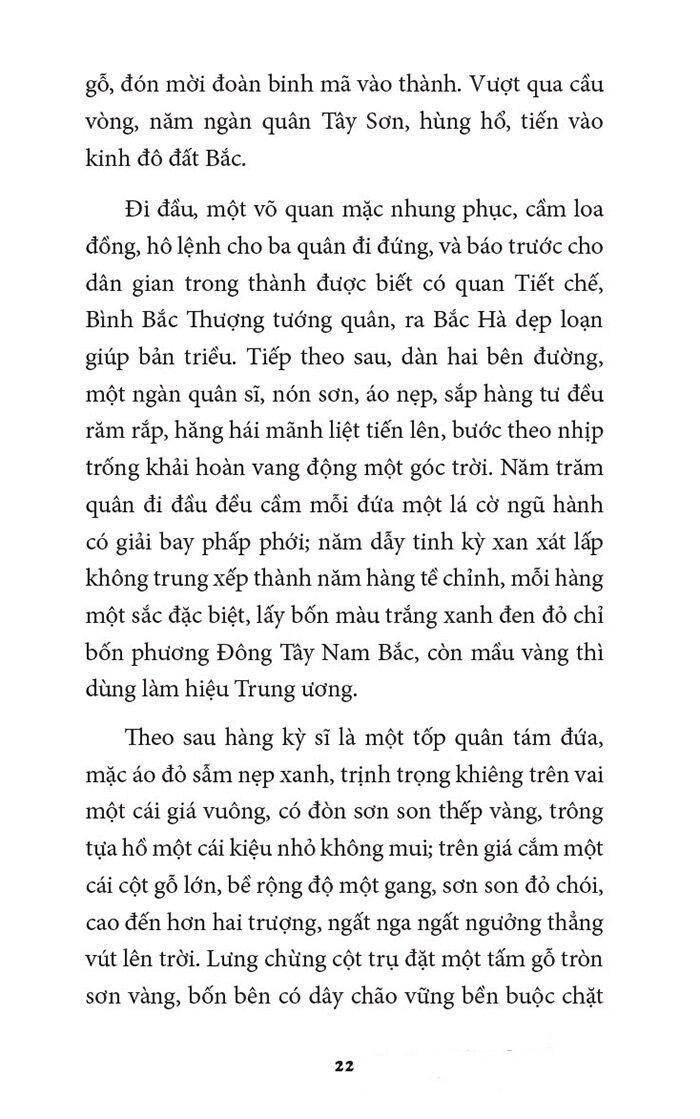 Các bạn đọc truyện này, hãy nên lượng cho tôi chỗ đó. Cái cốt truyện hay, giãi bằng một thể văn không tẻ, đó là sở nguyện của tôi. Nếu bạn cho là tôi đã đạt được mục đích ấy, tôi tự lấy làm sung sướng lắm rồi. Một nhà văn còn đâu dám tự phụ mình cũng là một sử gia uyên bác?” (Ngày mùng hai tháng Tư năm Bính Dần) - TchyA