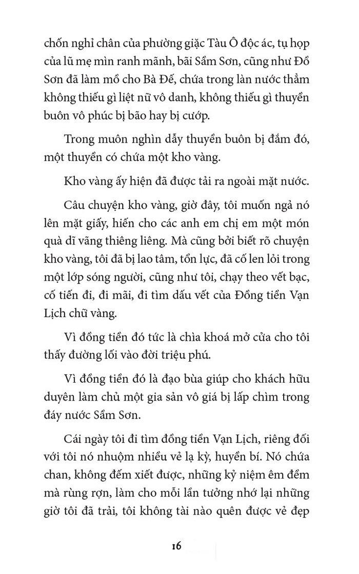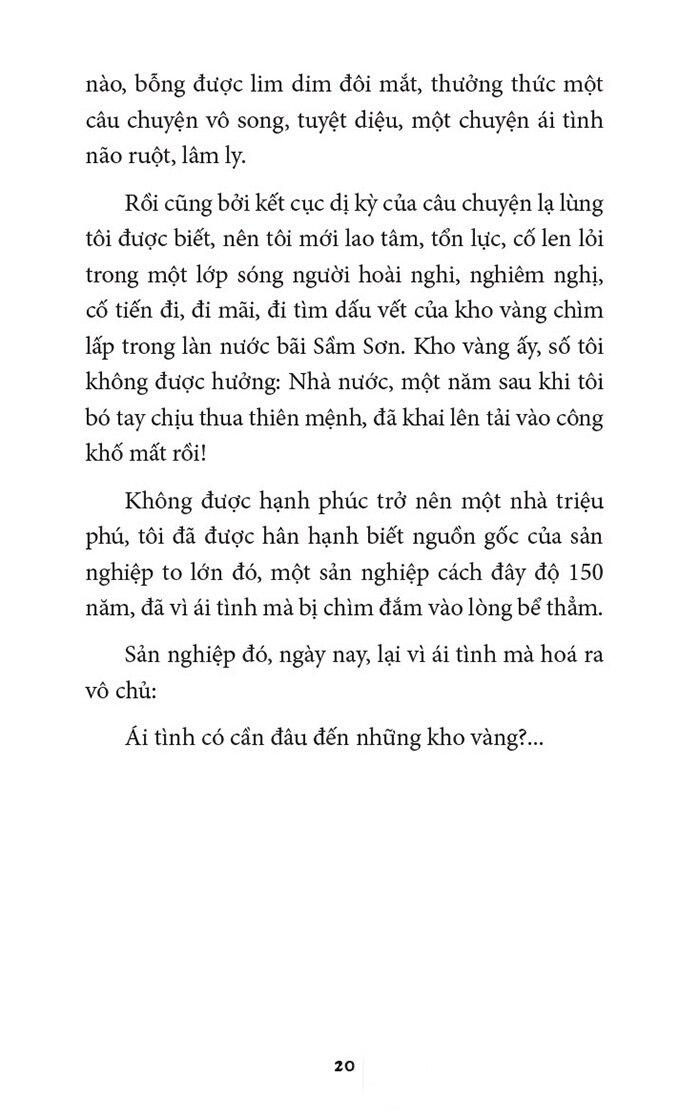 “Vào khoảng năm 1934, ở bãi Sầm Sơn tỉnh Thanh Hoá phía Bắc Trung Kỳ, nhà nước có khám phá được một kho vàng chìm đắm dưới đáy bể.