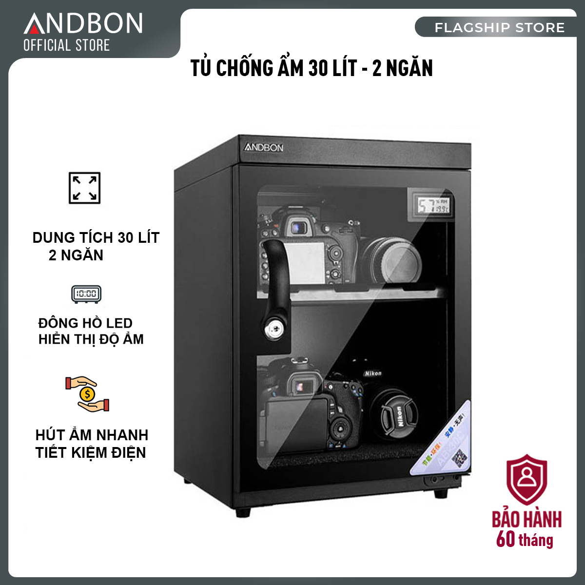 Thông số kỹ thuật Tủ chống ẩm máy ảnh 30 Lít nhập khẩu Andbon, Tủ hút ẩm 30L., 2 ngăn, màn lLCD cài đặt % độ ẩm, tiết kiệm điện - Hàng Chính hãng