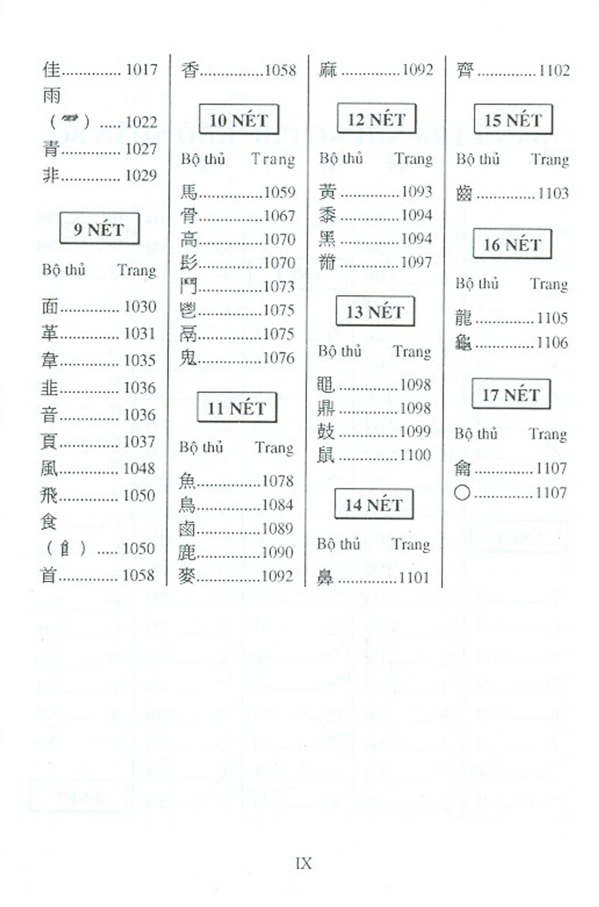 Có các bảng tra từ tiện dụng xếp theo âm Hán Việt và âm Bắc Kinh.