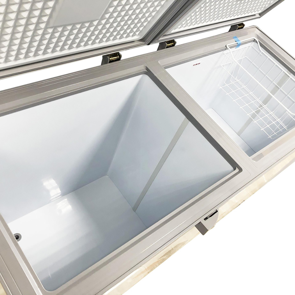 – Ngăn tủ được làm bằng loại nhựa ABS cao cấp có đặc tính dẻo dai, chịu được va đập tốt, bạn hoàn toàn có thể yên tâm về độ bền của sản phẩm. Hơn nữa lòng tủ được tráng phẳng, trơn thuận tiện cho việc vệ sinh tủ đông định kỳ của bạn.