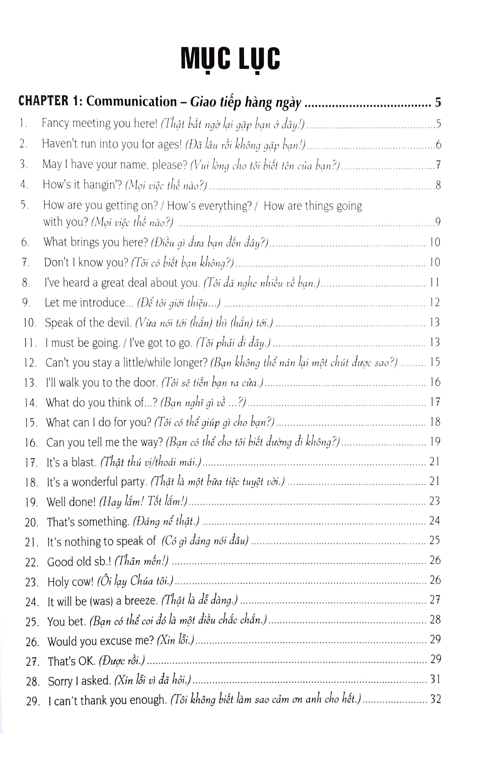 Với nội dung phong phú, đa dạng về chủ đề, chúng tôi hy vọng rằng các bạn sẽ nhanh chóng tiếp thu và giao tiếp tiếng Anh lưu loát trong công việc cũng như trong các tình huống giao tiếp hàng ngày của mình.