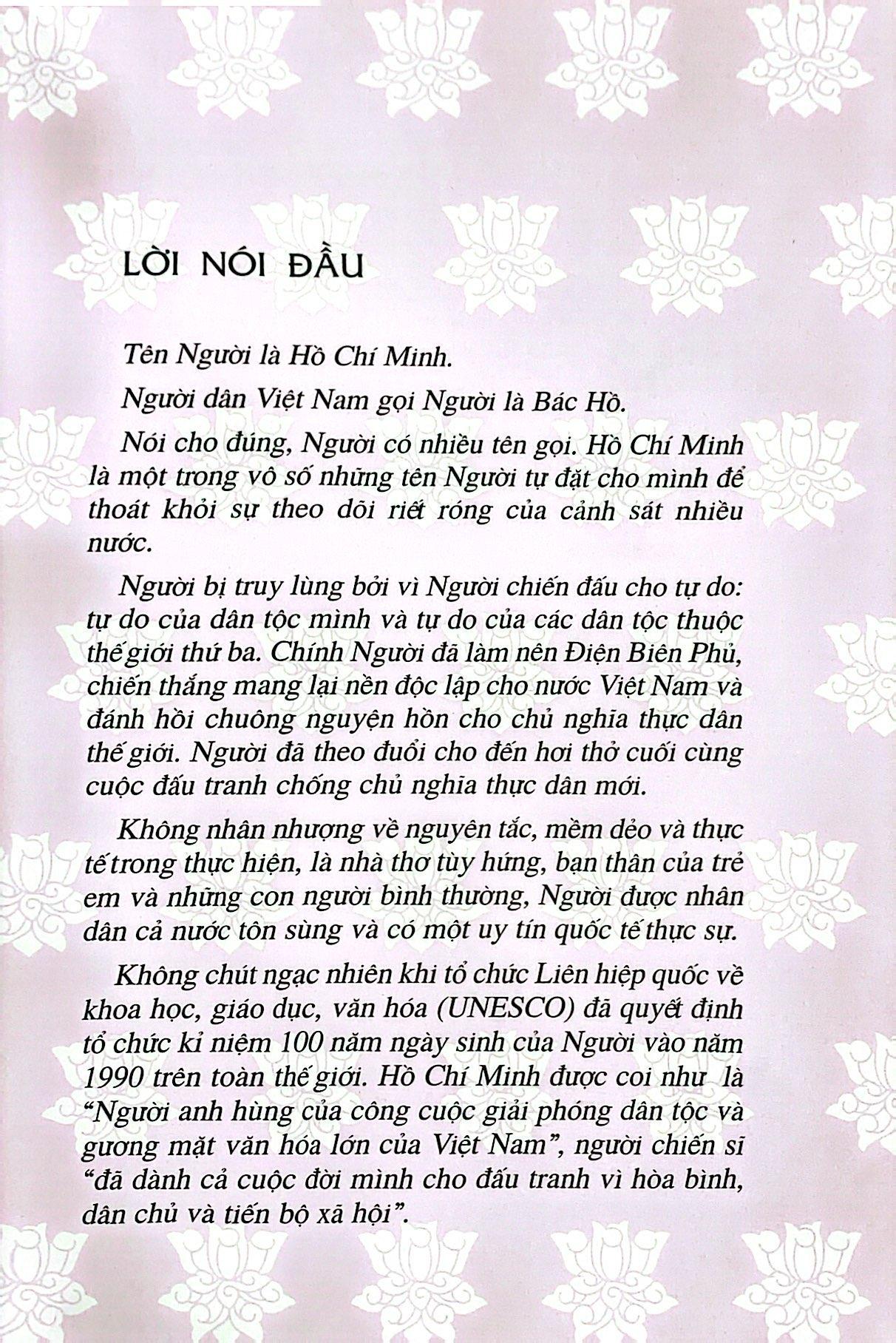 Mở đầu bằng hình ảnh làng Chùa, núi Hồng, sông Lam quê Bác, và kết thúc là hình ảnh “con tàu đang rời xa bến cảng Nhà Rồng, chở theo người đầu bếp, người thanh niên yêu nước Nguyễn Văn Ba, còn vọng lại tiếng nói của anh: Tổ quốc ta, nhân dân ta phải có độc lập, tự do chứ không thể nô lệ mãi được”, cuốn sách giúp các em nhỏ hiểu thêm về vị lãnh tụ kính yêu từ thuở ấu thơ cho tới khi Người bước chân ra đi tìm đường cứu nước