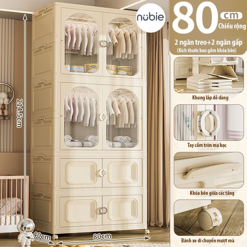Thông số kỹ thuật Tủ Quần Áo Gấp Gọn Nubie Có Ngăn Treo Trẻ Em, Đựng Đồ Đa Năng Thông Minh, Tháo Lắp Dễ Dàng, Nhựa PP