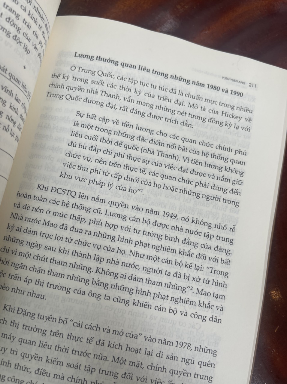 Kết hợp với lăng kính gốc này cùng hơn 400 cuộc phỏng vấn với các quan chức và doanh nhân T Qố, Ang đã tái hiện một cách có hệ thống quá trình phức tạp đã biến T Qố từ vũng nước tù của c.h.ủ ĩ x.ã hội trở thành kẻ phá bĩnh toàn cầu chỉ trong 35 năm. Trái ngược với những quan niệm sai lầm phổ biến, bà cho thấy điều đã thúc đẩy sự thay đổi lớn của T Qố không phải là c.h.ế đ.ộ kiểm soát đ.ộ t.à tập trung mà là“sự ứng biến có định hướng”– chỉ đạo từ Bắc Kinh song hành với sự ứng biến từ dưới lên của các c.h.ứ địa phương.
