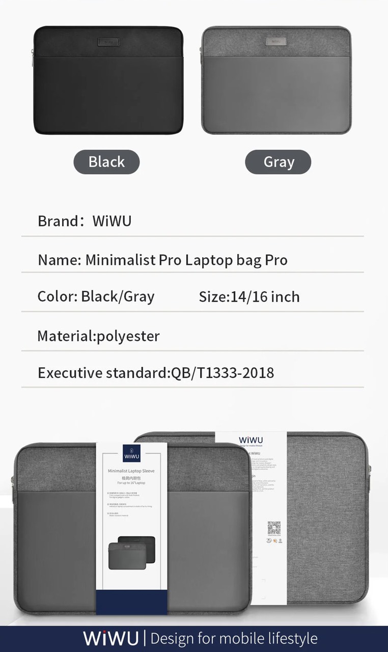 Thông số kỹ thuật Túi Chống Sốc WiWU Minimalist Sleeve Dùng Cho Laptop Chống Thấm Nước - Hàng Chính Hãng