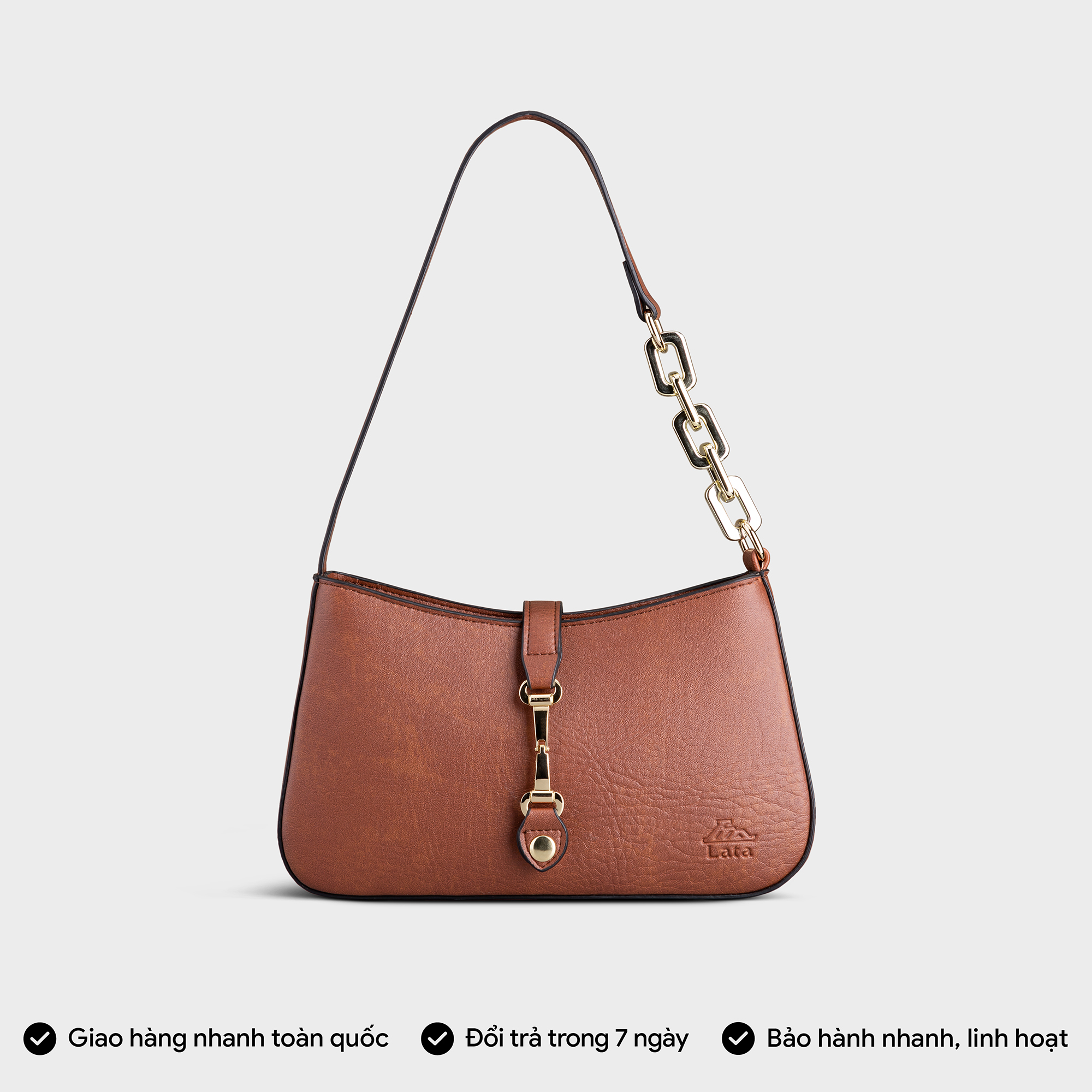 Túi đeo vai Lata HN108 với thiết kế bo cong thanh lịch sẽ khiến bạn thích thú ngay khi nhìn thấy. Túi có phần quai đeo ngắn, đeo một bên vai, khi đeo lên túi sẽ dài đến ngang eo. Phần khóa kim loại mạ vàng giúp tạo điểm nhấn đặc biệt cho chiếc túi. Phần ngăn chứa đủ rộng để bạn đựng được nhiều vật dụng cần thiết. Với các tông màu basic, chiếc túi phù hợp nhiều hoàn cảnh sử dụng cũng như nhiều loại trang phục trong tủ đồ của bạn.