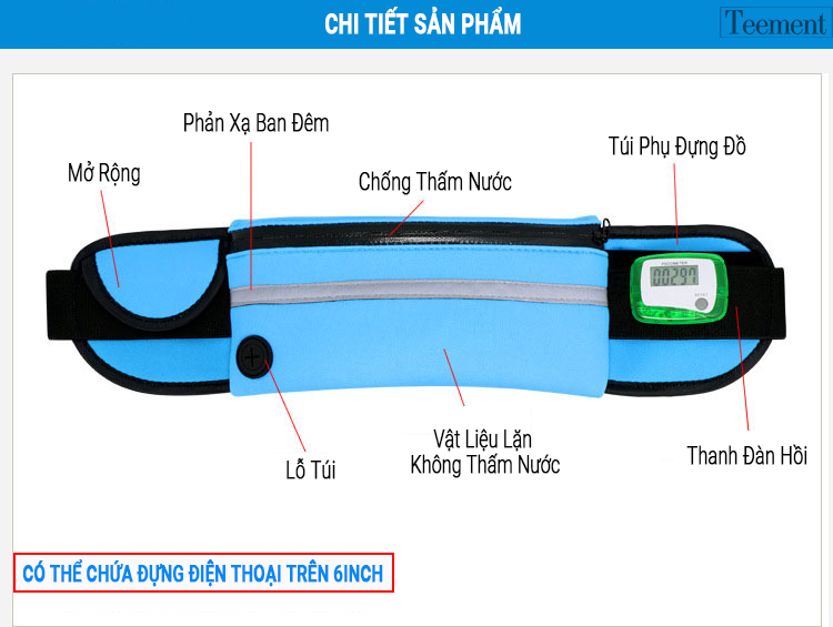 Thông số kỹ thuật Túi Đeo Bụng Chạy Bộ Chống Nước Teement TM01, Đai Đeo Điện Thoại Chạy Bộ, Túi Đeo Hông Chạy Bộ Phản Quang -hàng Chính Hãng
