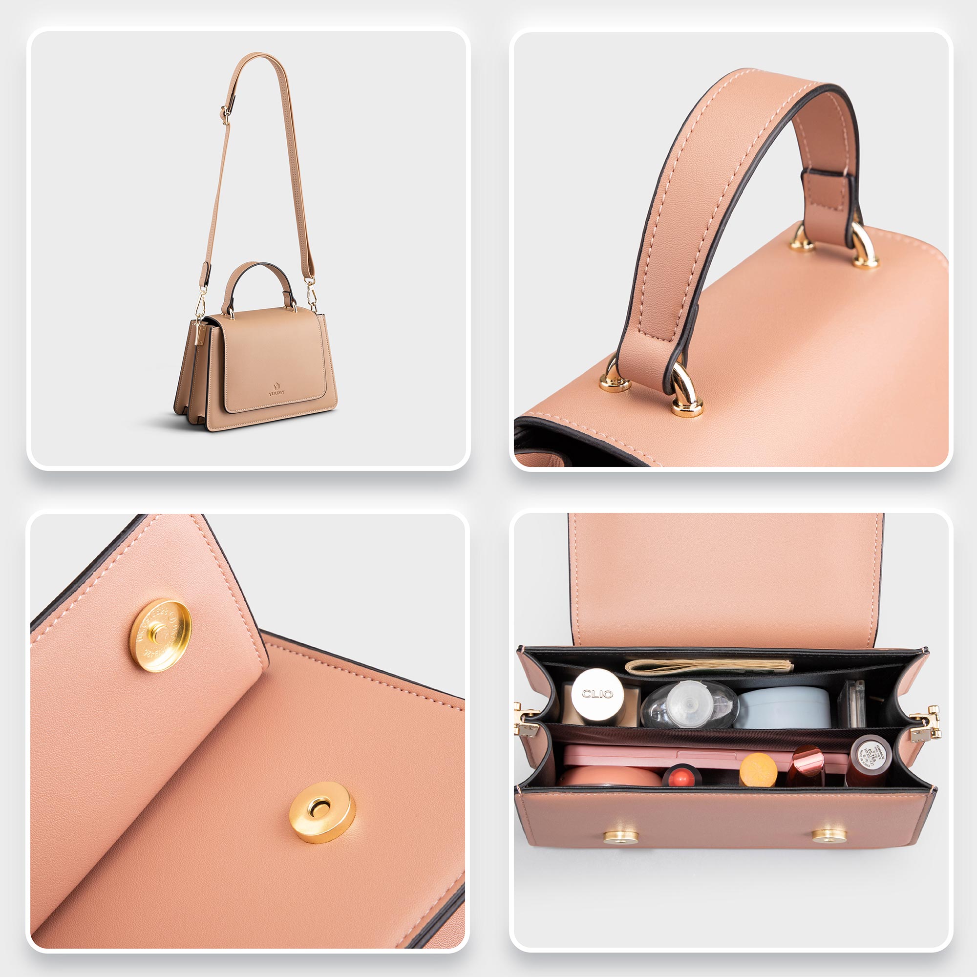 - Công dụng: Đựng tiền, điện thoại, ví tiền, son, mắt kính, chìa khóa xe,…