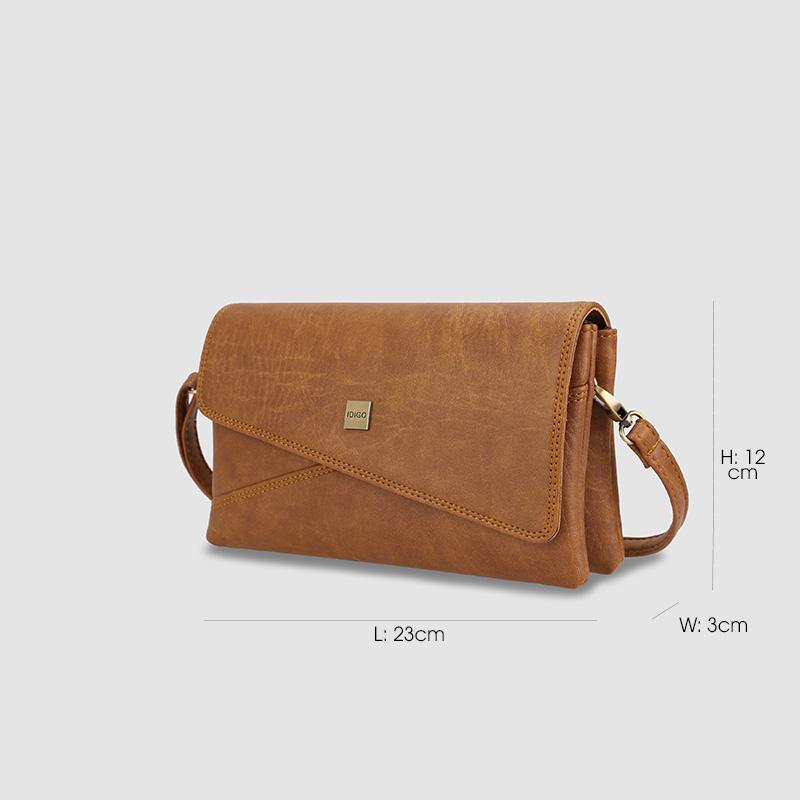 Là một trong những hot item của IDIGO với thiết kế nắp gập độc đáo, dáng túi bìa thư lạ mắt, với size túi gọn nhẹ giúp các nàng có thể thoải mái đeo hoặc cầm tay như một chiếc mang lại phong cách tự tin, cá tính và thời thượng trong những ngày đi chơi dạo phố với bạn bè, người thân, đi làm, đồng thời sang trọng, lịch thiệp khi đi dự tiệc. Trọng lượng túi chỉ 360 gram.