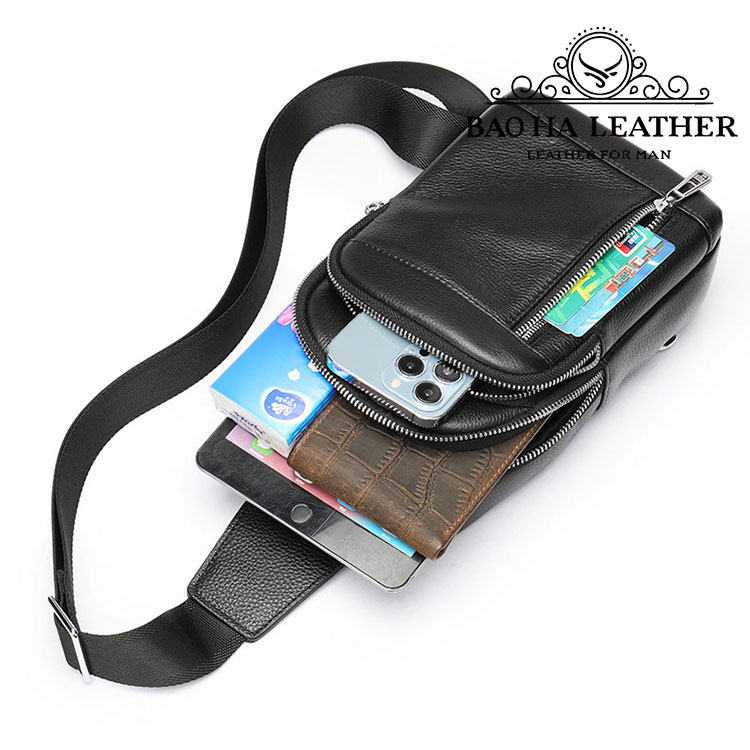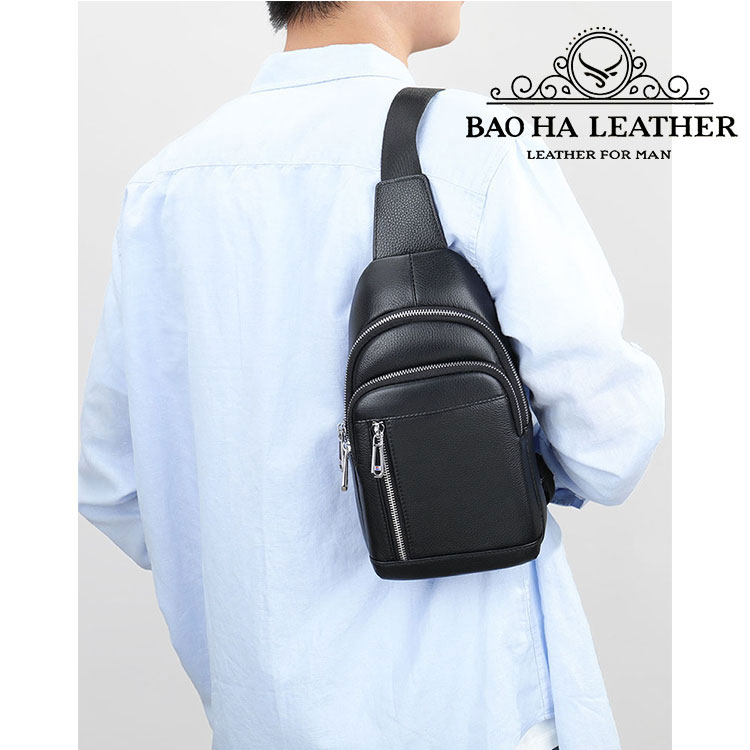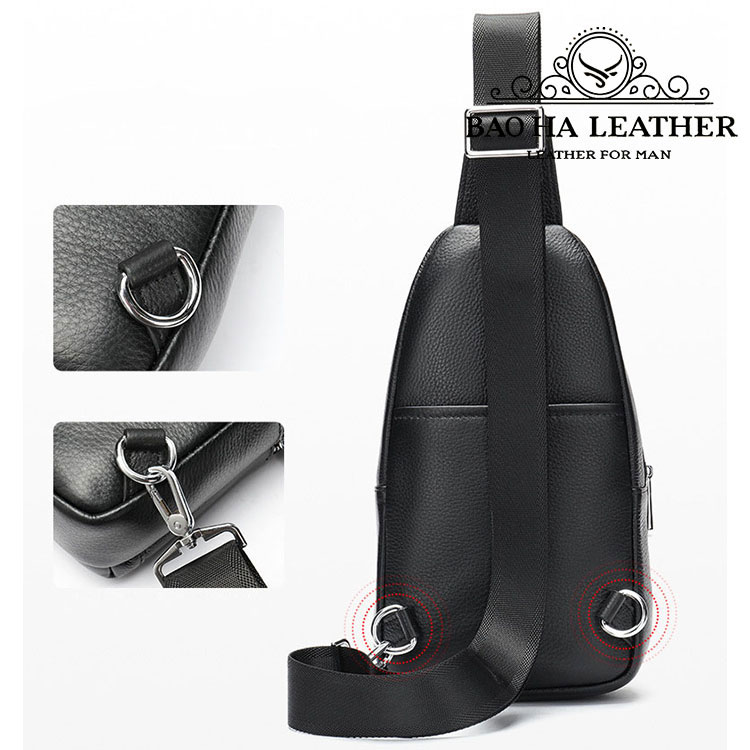 - Túi đeo ngực, đeo chéo nam da bò cao cấp BHM9104 được thiết kế khá đơn giản kết hợp với màu đen trơn mang lại sự giản dị cũng không kém phần trẻ trung, năng động cho người sử dụng.