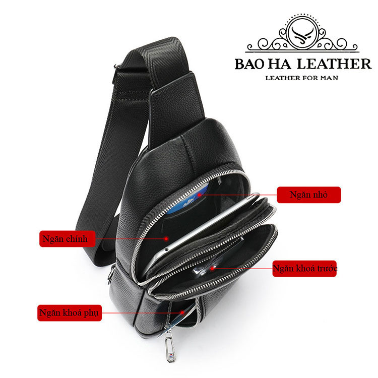- Túi đeo ngực được làm hoàn toàn từ da bò nguyên tấm 100%, đảm bảo không bong nổ đứt gãy trong suốt thời gian sử dụng lâu dài.