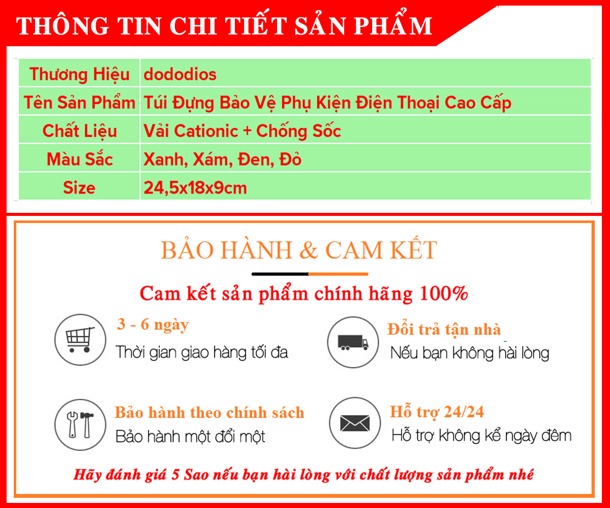 Sử dụng túi đựng phụ kiện điện thoại chính hãng Dododios để tránh mua phải hàng giả, hàng kém chất lượng nhé.