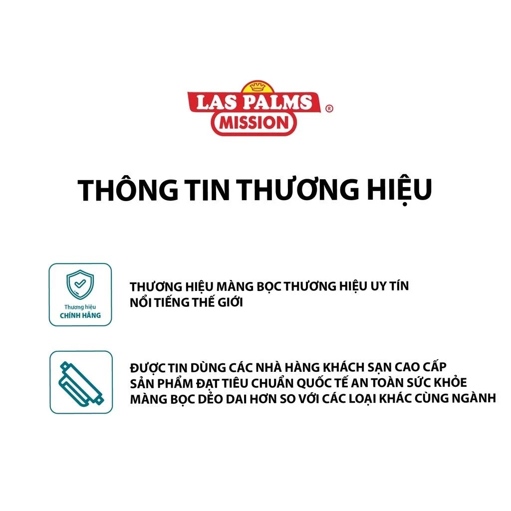 Las Palms là thương hiệu màng bọc nổi tiếng khắp mọi nơi trên thế giới, được dùng trong các nhà hàng khách sạn cao cấp. Sản phẩm được sản xuất theo tiêu chuẩn quốc tế mang lại an toàn sức khỏe cho người tiêu dùng. Màng bọc thực phẩm Las Palm dẻo và dai hơn so với các loại màng bọc khác cùng ngành.