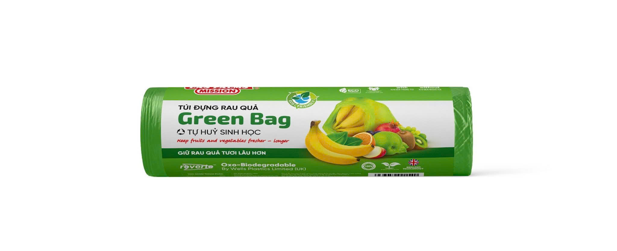 - Túi đựng rau quả Green Bag là túi nilon tự phân hủy, không gây ô nhiễm môi trường như các loại túi nhựa thông thường.
