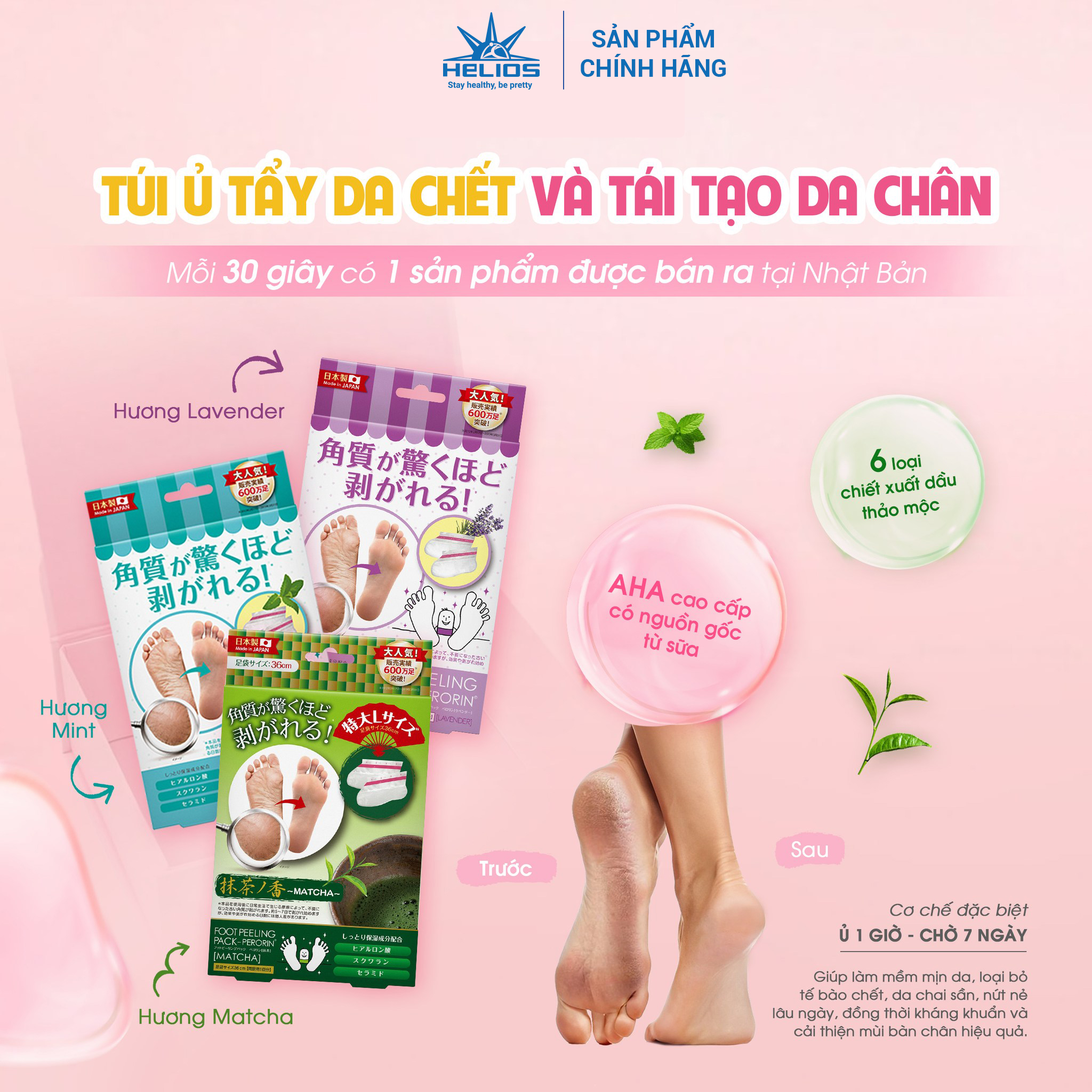 - Ủ chân 1 giờ, chờ 5 - 7 ngày, bàn chân hồng hào và mềm mịn có thể duy trì đến 60 ngày*