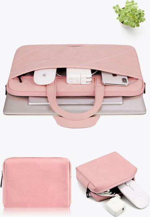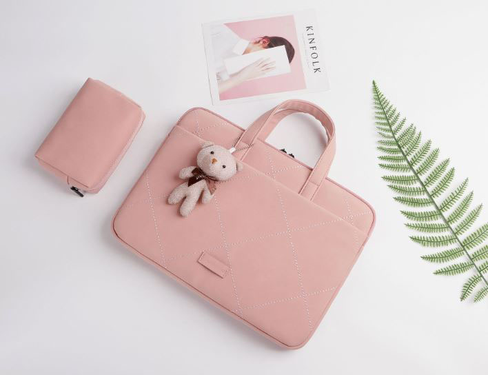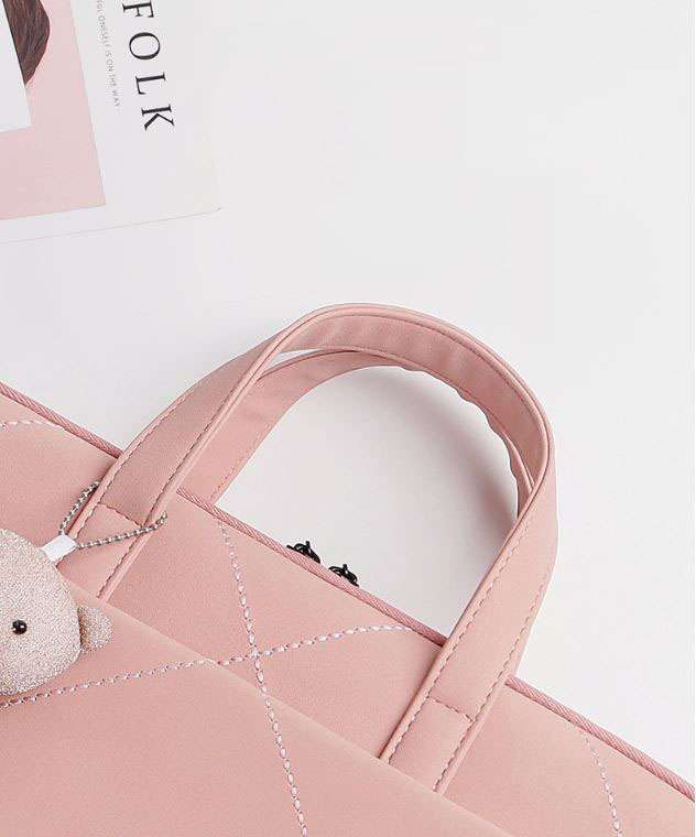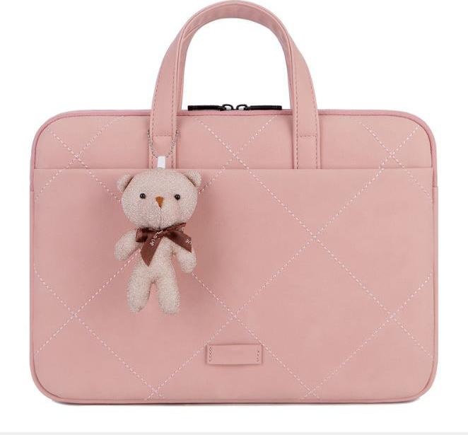 TÚI XÁCH DA CHỐNG SỐC CHO MÁY TÍNH, MACBOOK, LAPTOP MÀU HỒNG SIÊU CUTE - TẶNG KÈM GẤU BÔNG VÀ VÍ ĐỰNG SẠC CHUỘT