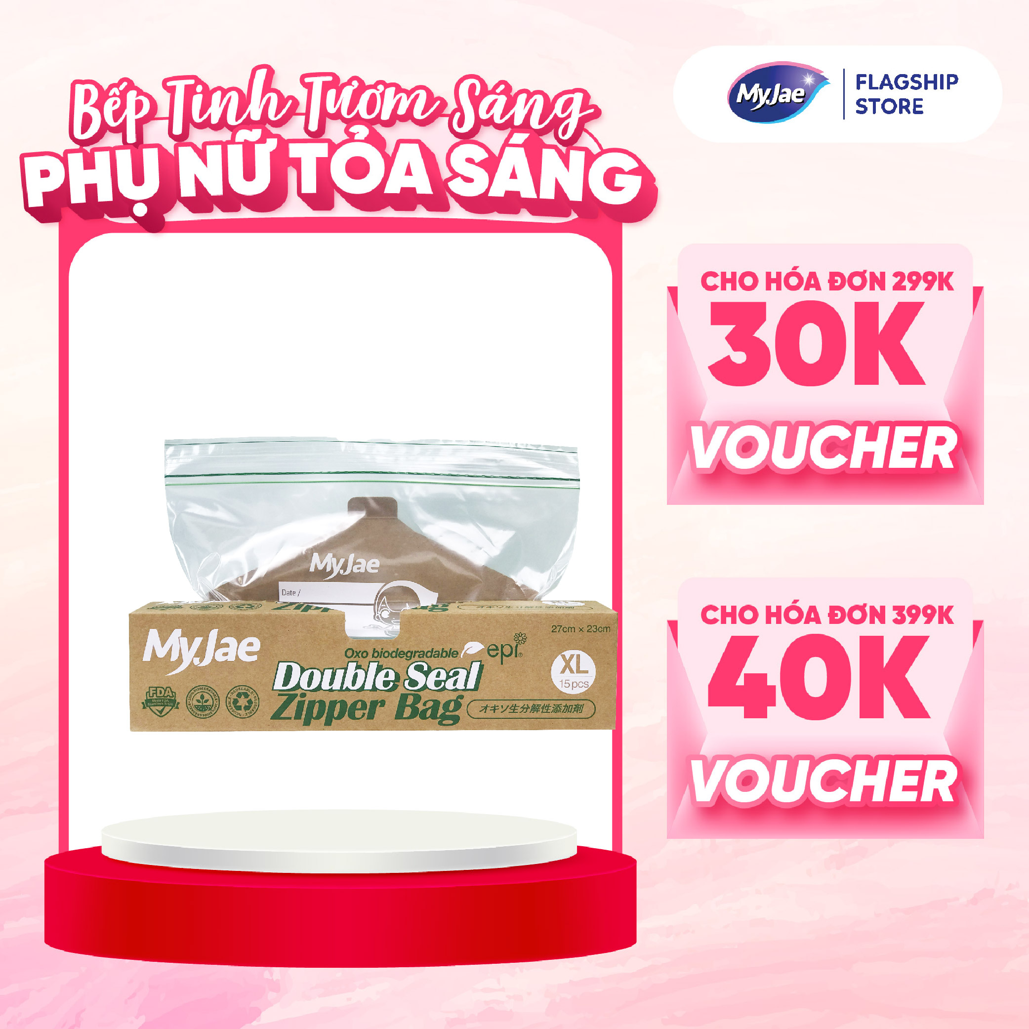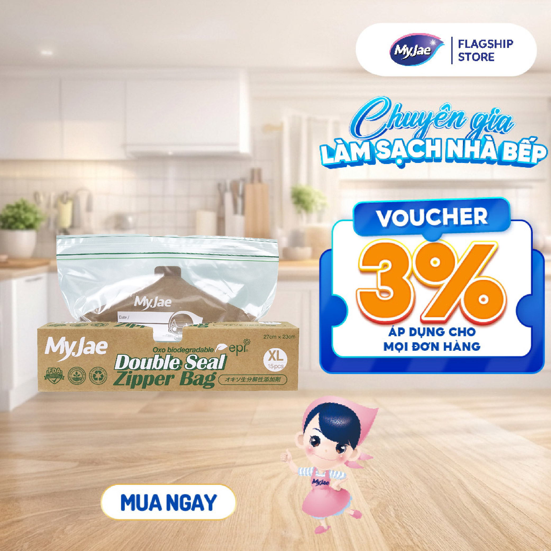 Thông số kỹ thuật Túi zip Myjae hai đường kéo tự huỷ sinh học (XL)