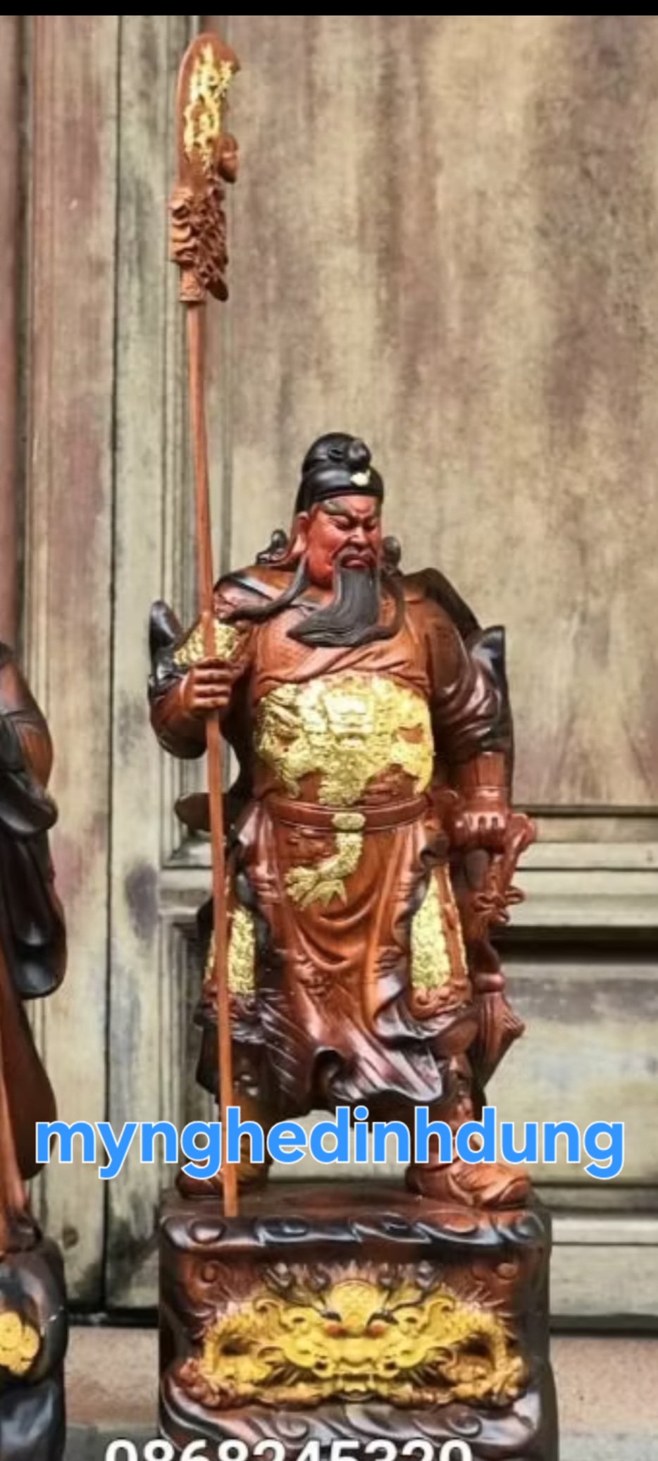 Thông số kỹ thuật Tượng quan công cầm đao trấn ải bằng gỗ hương đa tô làm mầu giả cổ kt cao 60×25×15cm