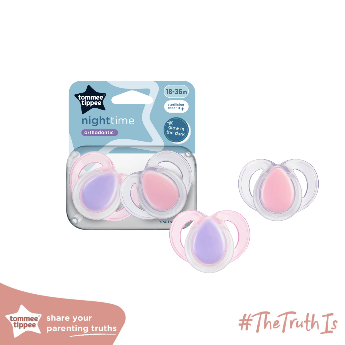 ● 02 x Ty ngậm dạ quang Tommee Tippee Night Time cho bé 0-6, 6-18, 18-36 Tháng