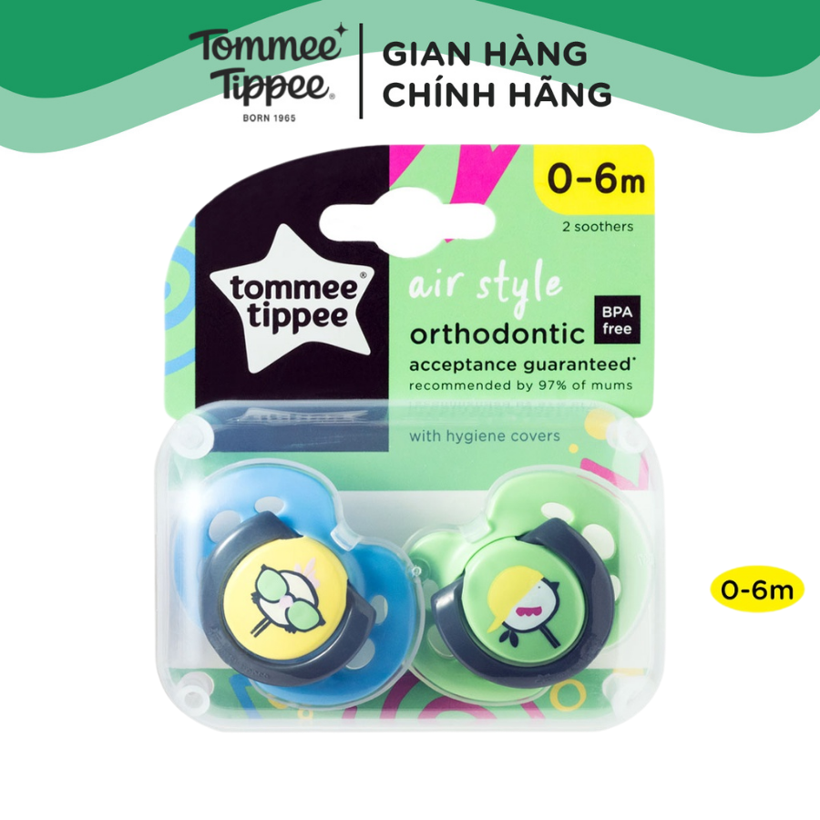 Ty ngậm thoáng khí Tommee Tippee Air Style cho bé 0-6 tháng (vỉ 2 cái) chính hãng