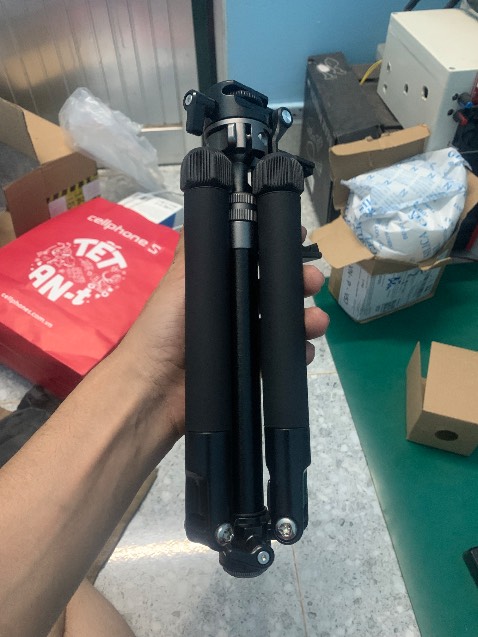 - Chiều cao có thể điều chỉnh với chân 5 đoạn và một cột trung tâm(cột trung tâm có thể tháo rời thành tripod cầm tay), mở và đóng chân bằng khóa xoay.