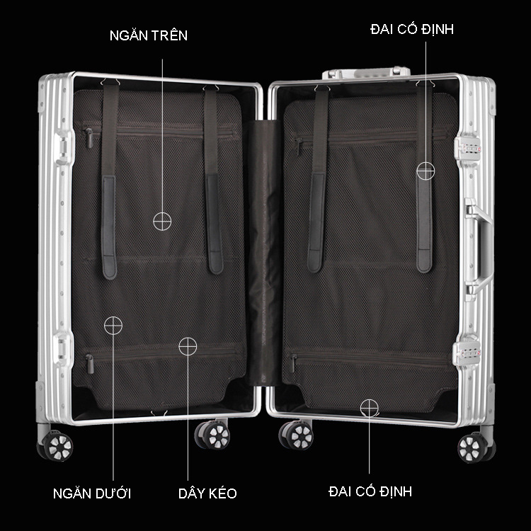 Vali hợp kim nhôm được thiết kế chú trọng đến độ bền. Được làm từ nhôm cao cấp, làm cho nó mạnh mẽ và nhẹ.
