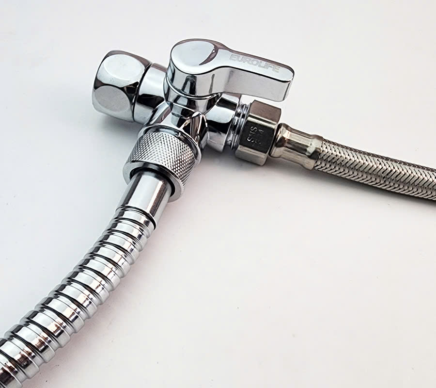 Bạn có thể dễ dàng chia nước cho bộ xịt vệ sinh từ đầu cấp của bồn cầu mà không cần van khóa hay một đường chờ từ trước, thuận tiện để lắp đặt bất kỳ không gian nào.