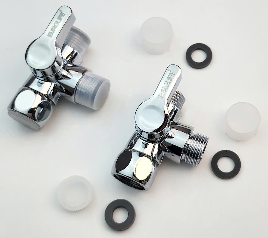 Van T 3 đường nước 21mm dùng chia nước cho bồn cầu và bộ xịt vệ sinh Eurolife EL-VT03 (2 màu: đen, trắng)