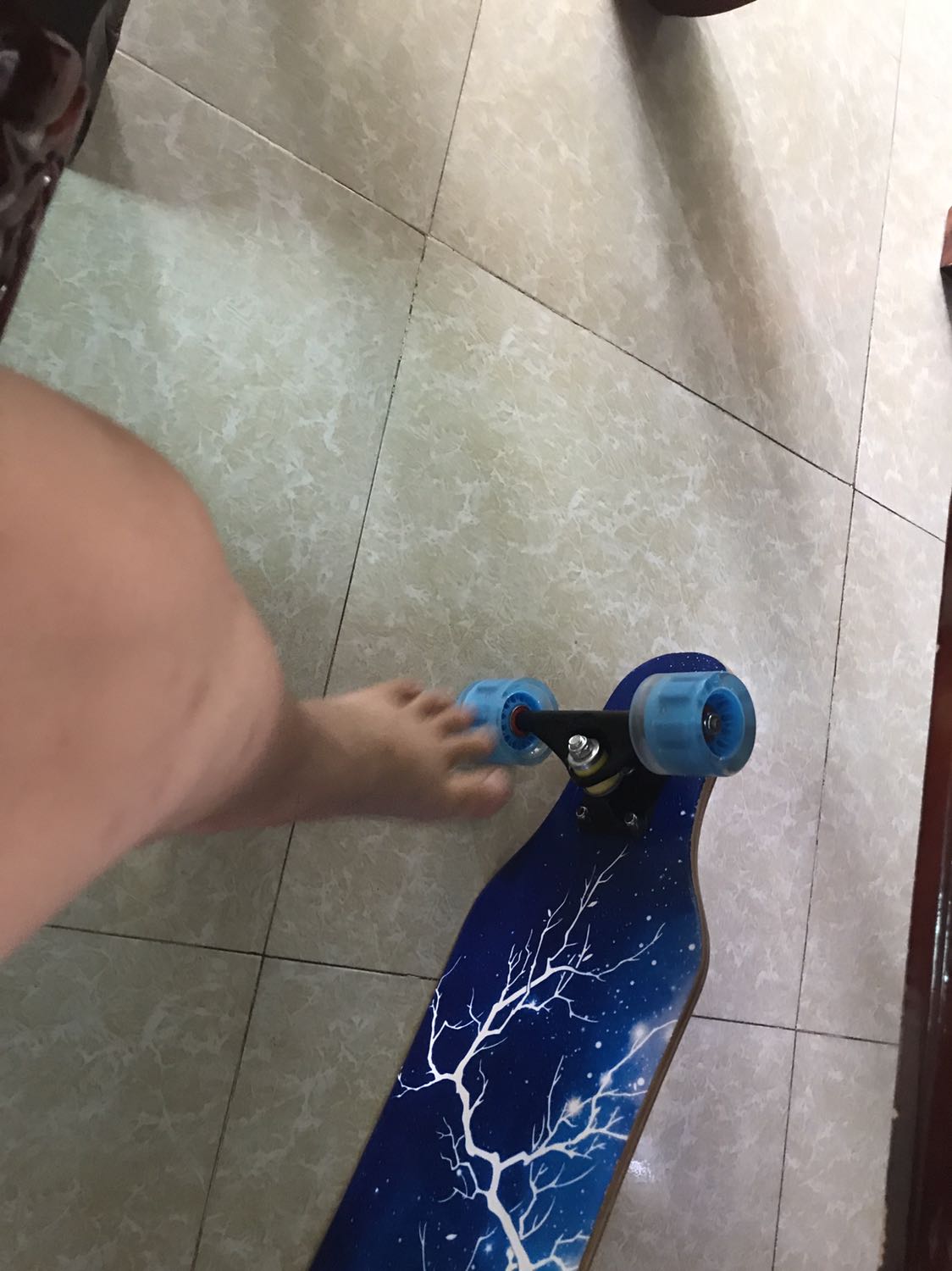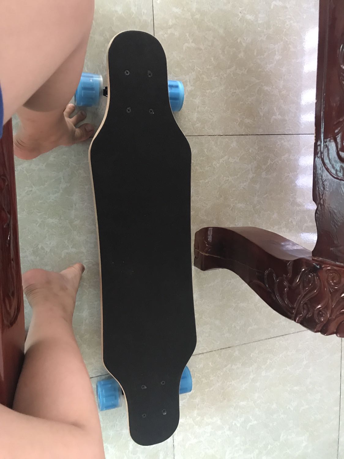 - Mặt trên được dán 1 lớp mặt đen nhám giúp tăng độ ma sát,chống nước cực kì tốt.Đặc biệt bánh xe được trang bị vòng bi ABEC-7 chất lượng tốt, có thể thay đổi khi cần.
