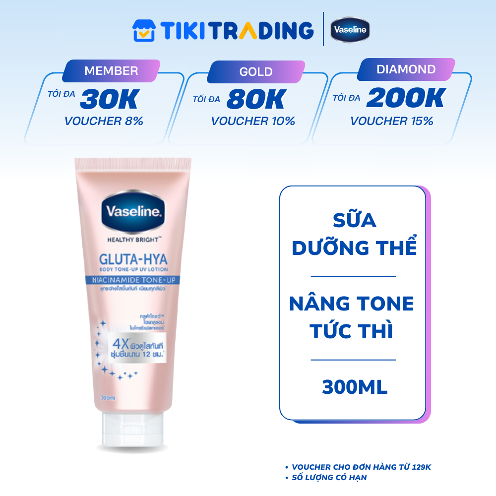 Thông số kỹ thuật Vaseline Gluta-Hya Dưỡng Thể Nâng Tông Tức Thì Gấp 4 Lần 300ML