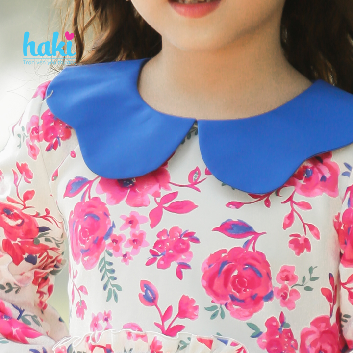 Có thể nói mẫu Váy bé gái hoa bèo tay cổ Peter Pan sắc màu Haki sắc màu chính là điểm cuốn hút của toàn bộ BST Thu - Đông của Haki, một nét đột phá và ấn tượng trong phong cách của bé. Chất liệu vải thô mềm mại, điểm xuyết những hoa văn lớn nhỏ đẹp mắt tạo nên phong cách cổ điển, quý phái mà không bộ trang phục nào mang lại được. Phần phần tay thiết kế bồng bềnh với 1 lớp bèo nhún, cổ áo ""peter pan"" cách điệu nổi bật được pha phối ""ton sur ton"" với họa tiết trên vải khiến bé trở nên nữ tính va dịu dàng hơn. Thiết kế độc quyền từ Haki với từng đường chỉ may sắc sảo, tinh tế, đảm bảo an toàn và thoải mái tối ưu cho bé.