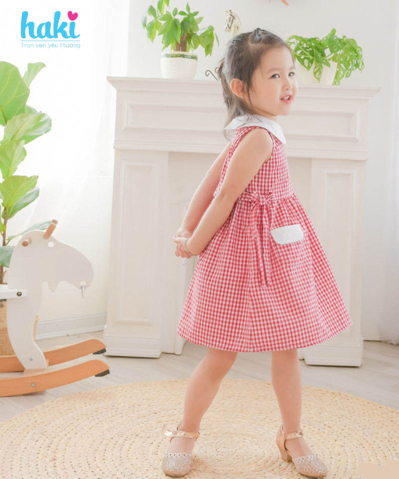 Thông số kỹ thuật Váy bé gái sát nách cổ sen phối màu HK519, đầm bé gái, váy mùa hè cho bé gái, váy hè, đầm thiết kế cho bé 10-27kg