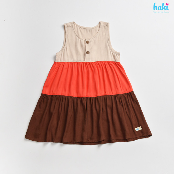 Váy bé gái 3 tầng color block Haki vô cùng bắt mắt và xinh xắn, phối 3 màu kiểu color block rất "Tây", chất vải thô lanh thái mềm mại thấm hút mồ hôi cực tốt. Váy rất phù hợp cho các bé đi biển, đi chơi, đi chụp ảnh những ngày hè rực rỡ.