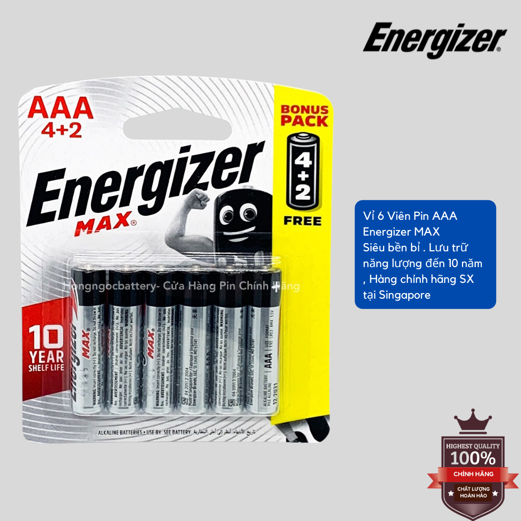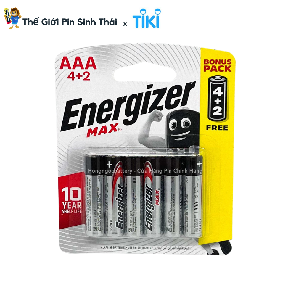 Thông số kỹ thuật Vỉ 6 Viên Pin AA , Pin AAA Energizer Max 1,5V Alkaline - Hàng chính hãng