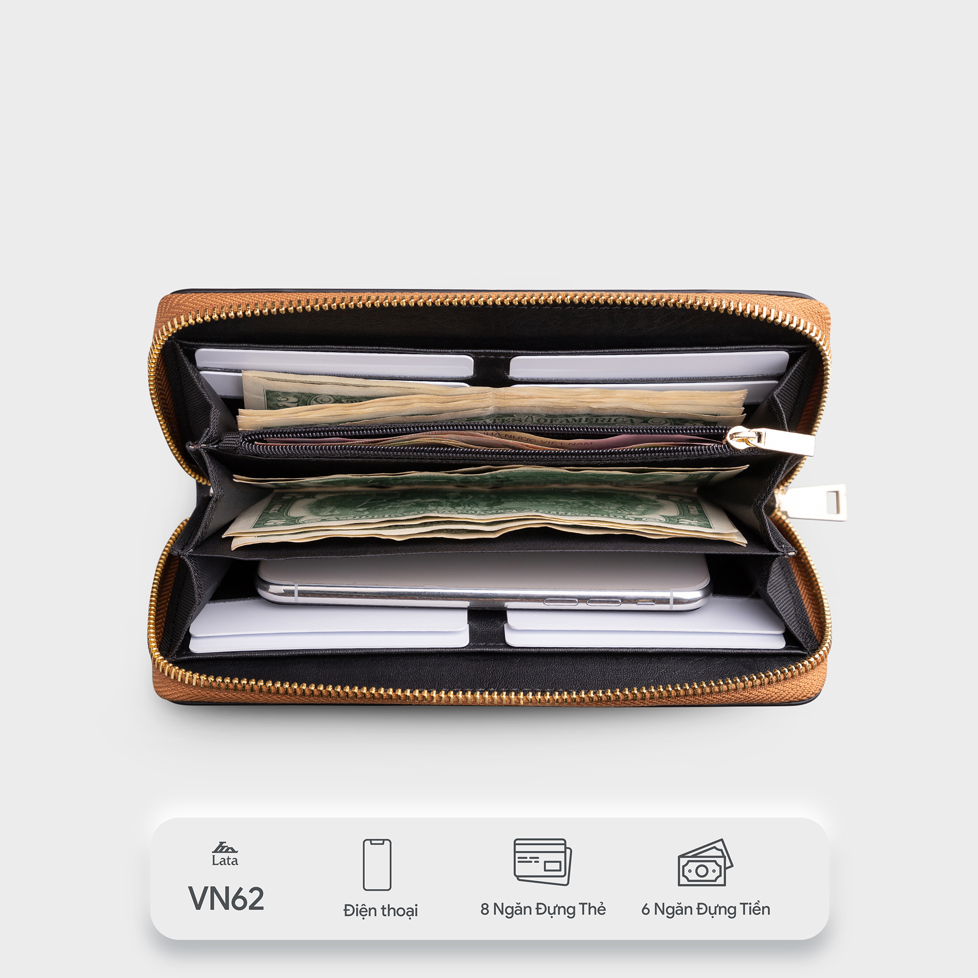 Thông số kỹ thuật Ví Lata ( Thời trang nữ dáng cầm tay dáng dài - Ví da VN62 )