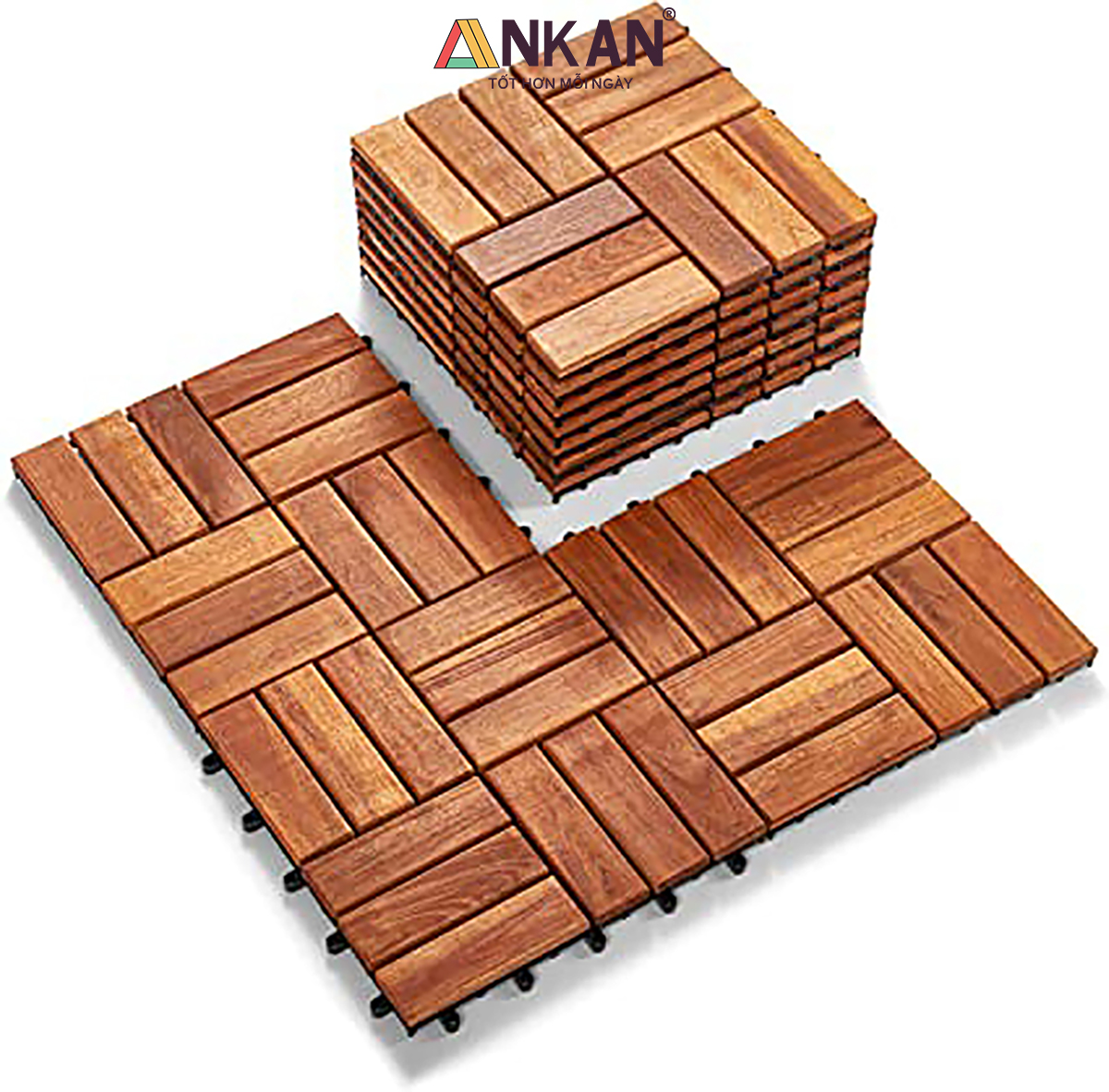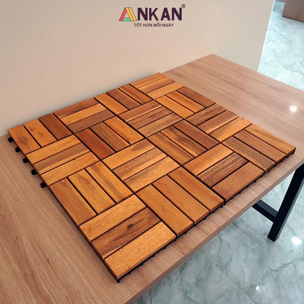 Thông số kỹ thuật Vỉ Gỗ Lót Sàn Ban Công Thương Hiệu ANKAN Màu Nâu Vàng Loại 12 Nan, Ván Gỗ Lót Sàn Ngoài Trời, Sân Vườn, Hồ Bơi, Phòng Spa, Siêu Bền, Chịu Nước Tốt, Chống Trơn Trượt, Tiêu Chuẩn Xuất Khẩu (1 Vỉ)