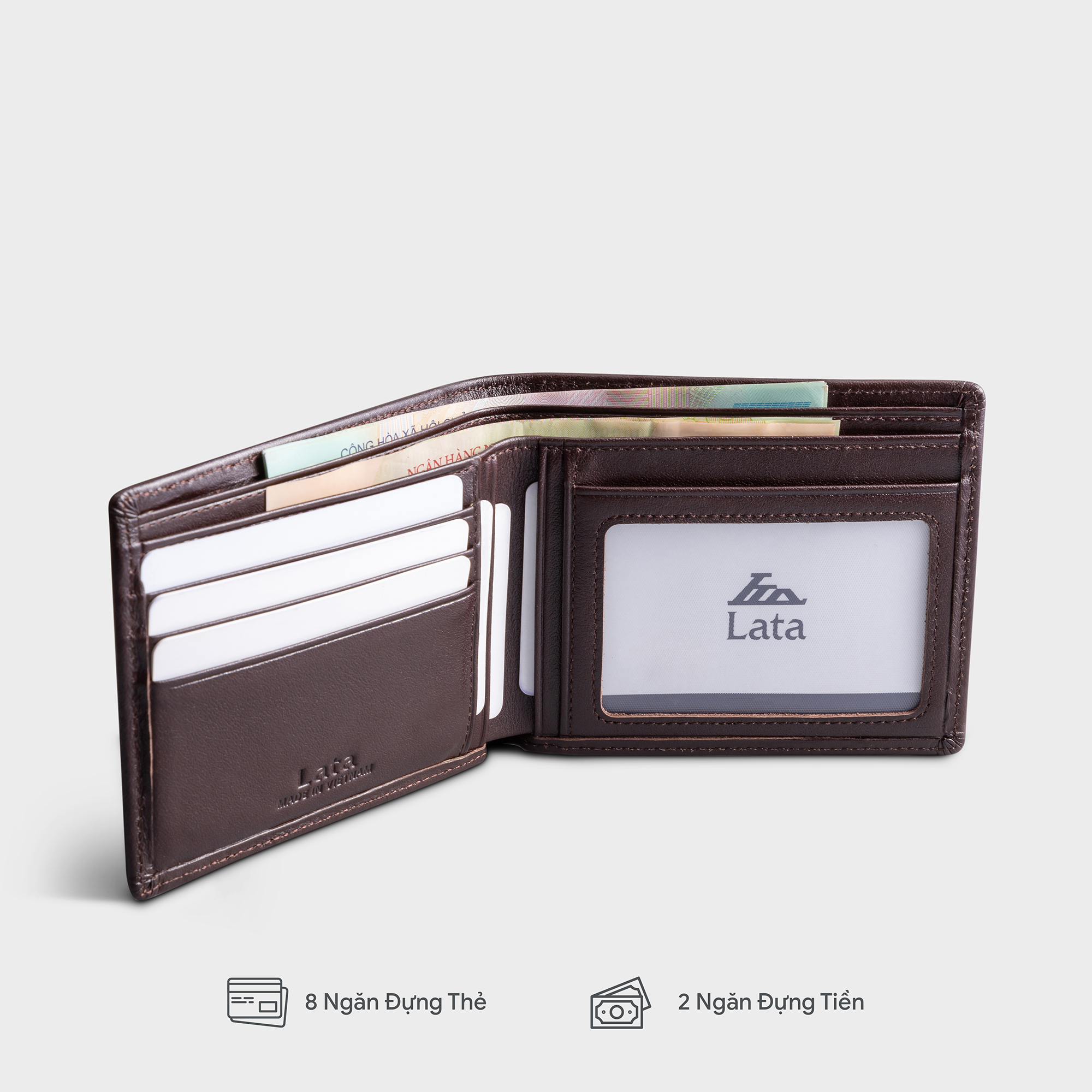 Thông số kỹ thuật Ví nam da bò Lata ( Thời trang nam gấp 2 dáng ngang - Ví da thật LVN97 )